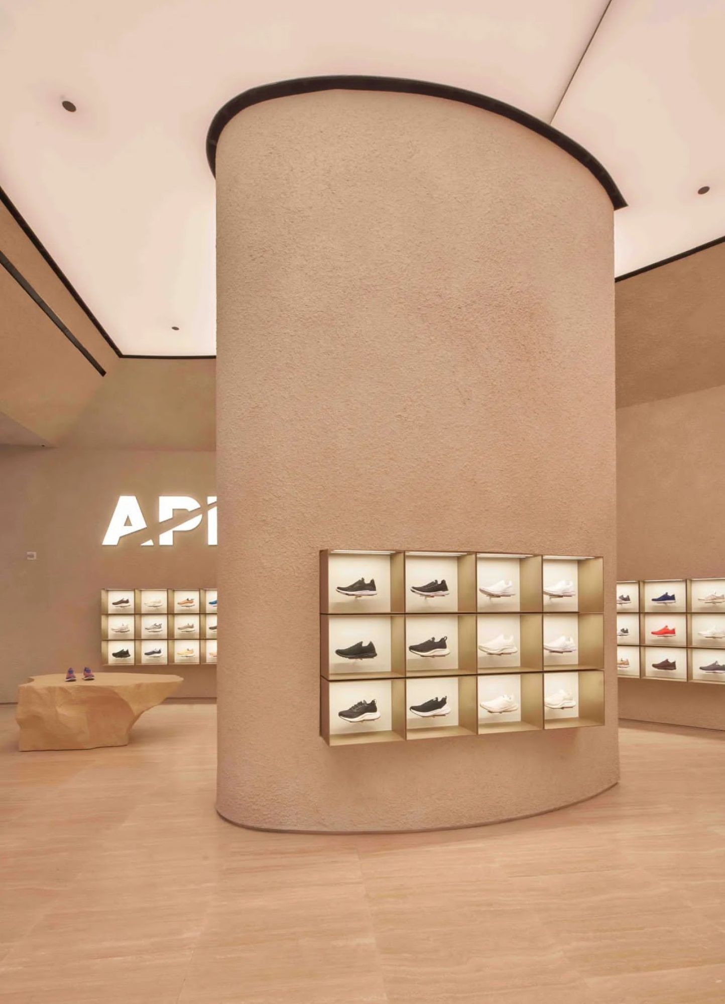 the design challenge for the boutique of apl - athletic propulsion labs, the high-performance sports footwear brand, was to create light display boxes that perfectly matched the complexity of the space and a lighting design that would enhance not only the products on display, but also the quality of the architectural project and the materials used in it.