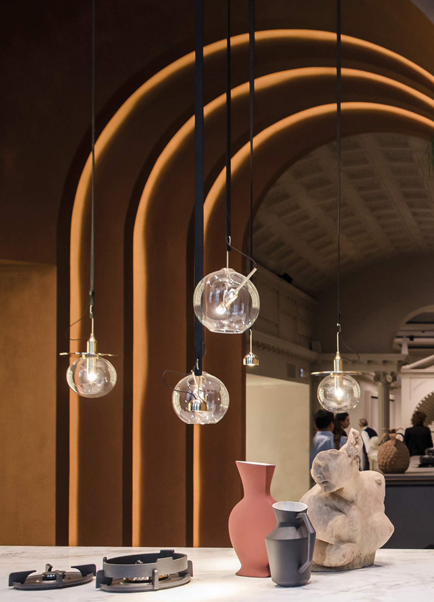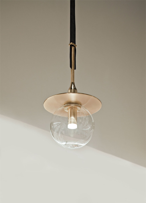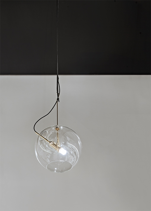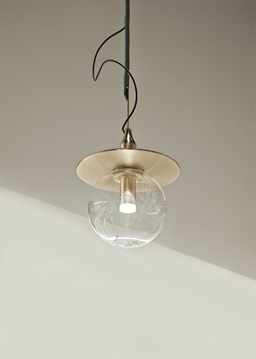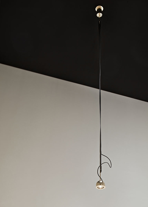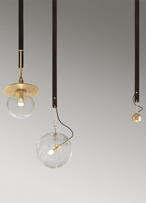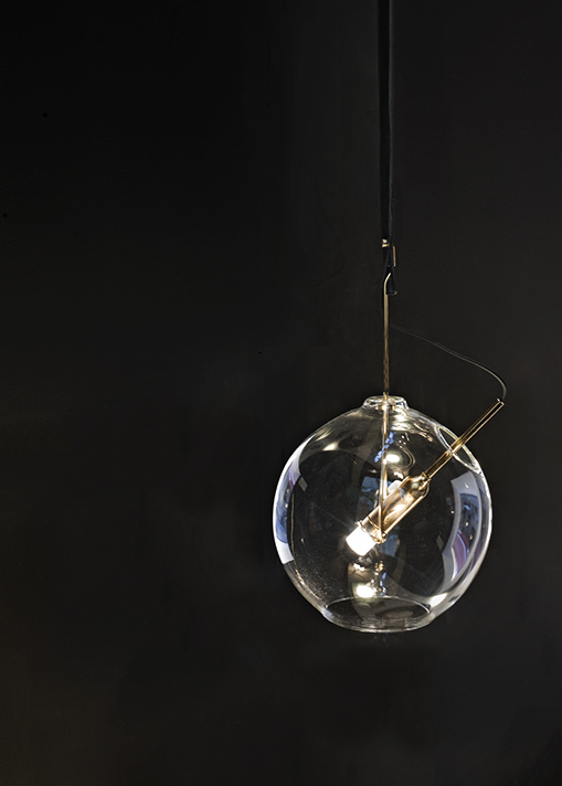 apparecchio di illuminazione a sospensione per interni realizzato in alluminio ossidato. composto da cinghia in pelle elettrificata internamente 1100mm/43.3'' o 2600mm/102.3'' collegata al diffusore tramite un cavo con connettore ‘sottopelle'. modelli: sul, sfera in vetro extra-chiaro diametro Ø175mm/6.8'', disco metallico di diametro Ø255mm/8.8'' e diffusore in cristallo trasparente, disponibile nella versione con rosone diametro Ø55mm/2.1'' h.270mm/10.6'' o a scomparsa totale, sole, provvisto di bulbo in vetro extra-chiaro diametro Ø234mm/9.2'' e diffusore in cristallo trasparente innestato lateralmente, disponibile nella versione con rosone diametro Ø55mm/2.1'' h.270mm/10.6'' o a scomparsa totale, va, composto da campana in metallo diametro Ø55mm/2.1'' per luce d'accento, disponibile nella versione con rosone diametro Ø55mm/2.1'' h.270mm/10.6'' o a scomparsa totale. cablato con sorgente elettronica 2700K Ra95 6,8W 433lm. alimentatore 12V 50-60Hz integrato nella versione con rosone, diametro Ø55mm/2.1'' h.270mm/10.6'', alimentatore escluso da installare remoto nella versione scomparsa totale. eventuali irregolarità del vetro sono garanzia di un prodotto unico, soffiato e realizzato interamente a mano da maestri vetrai. finiture: ottone satinato.