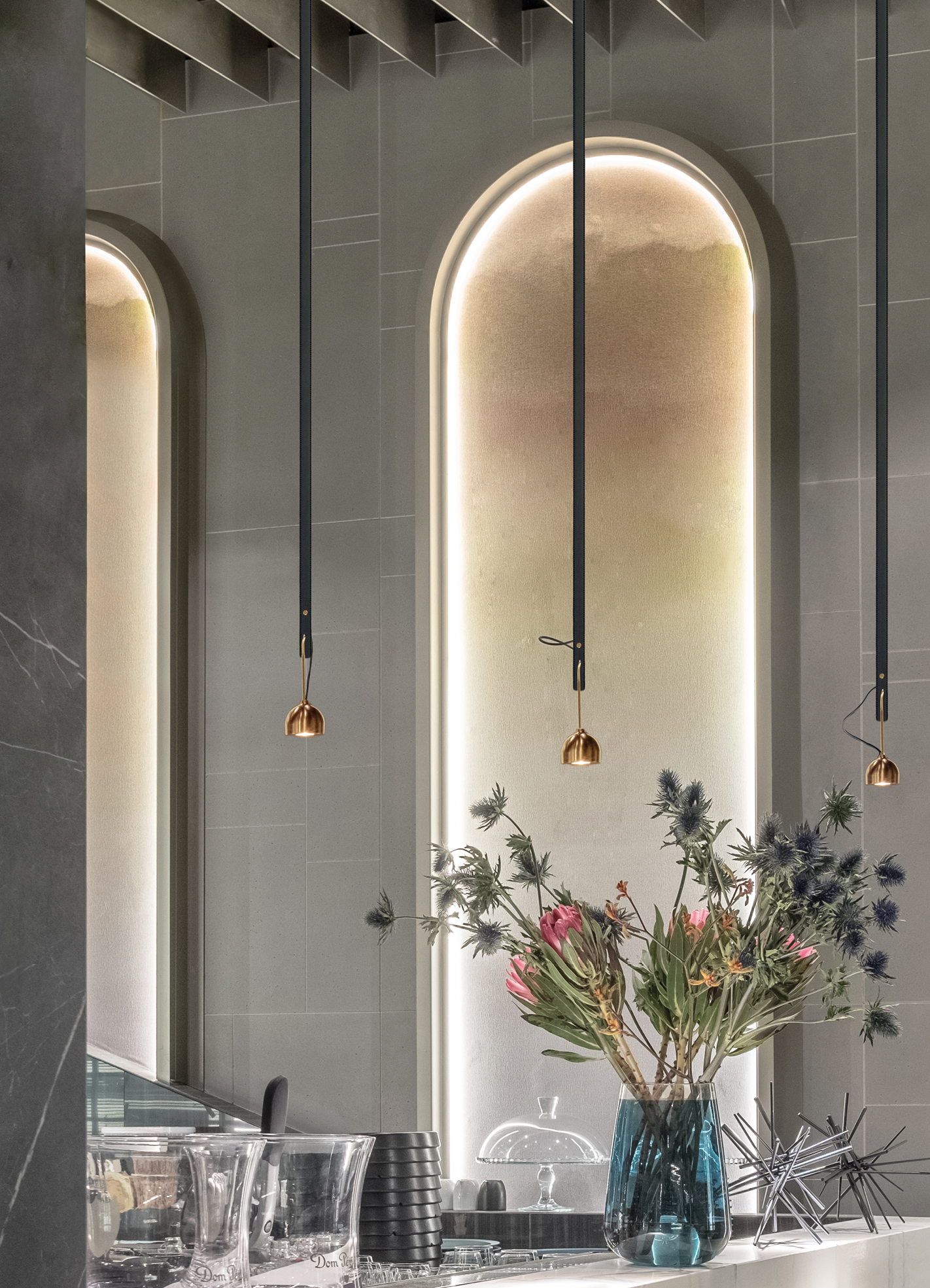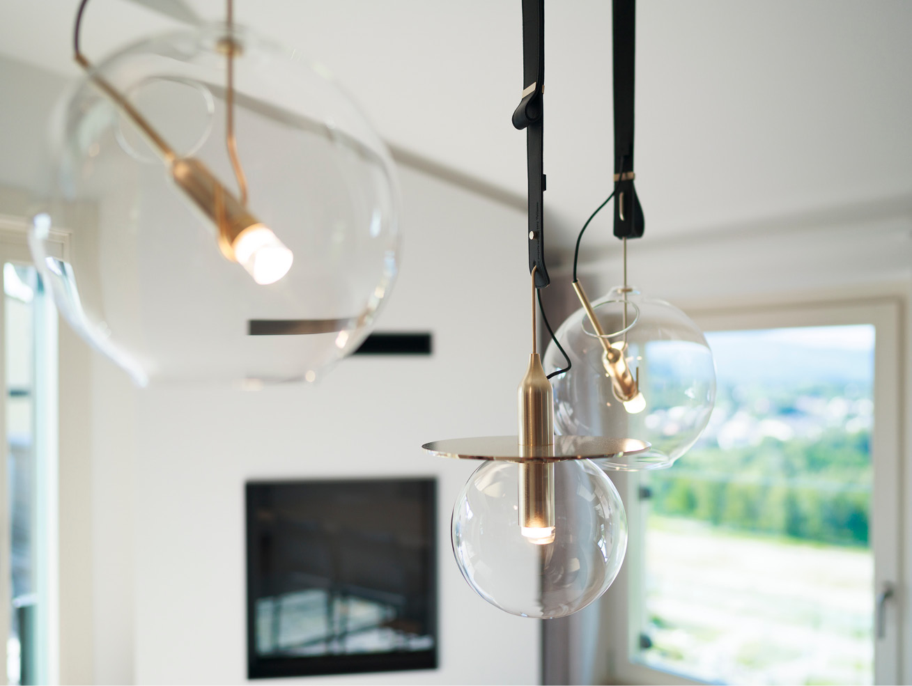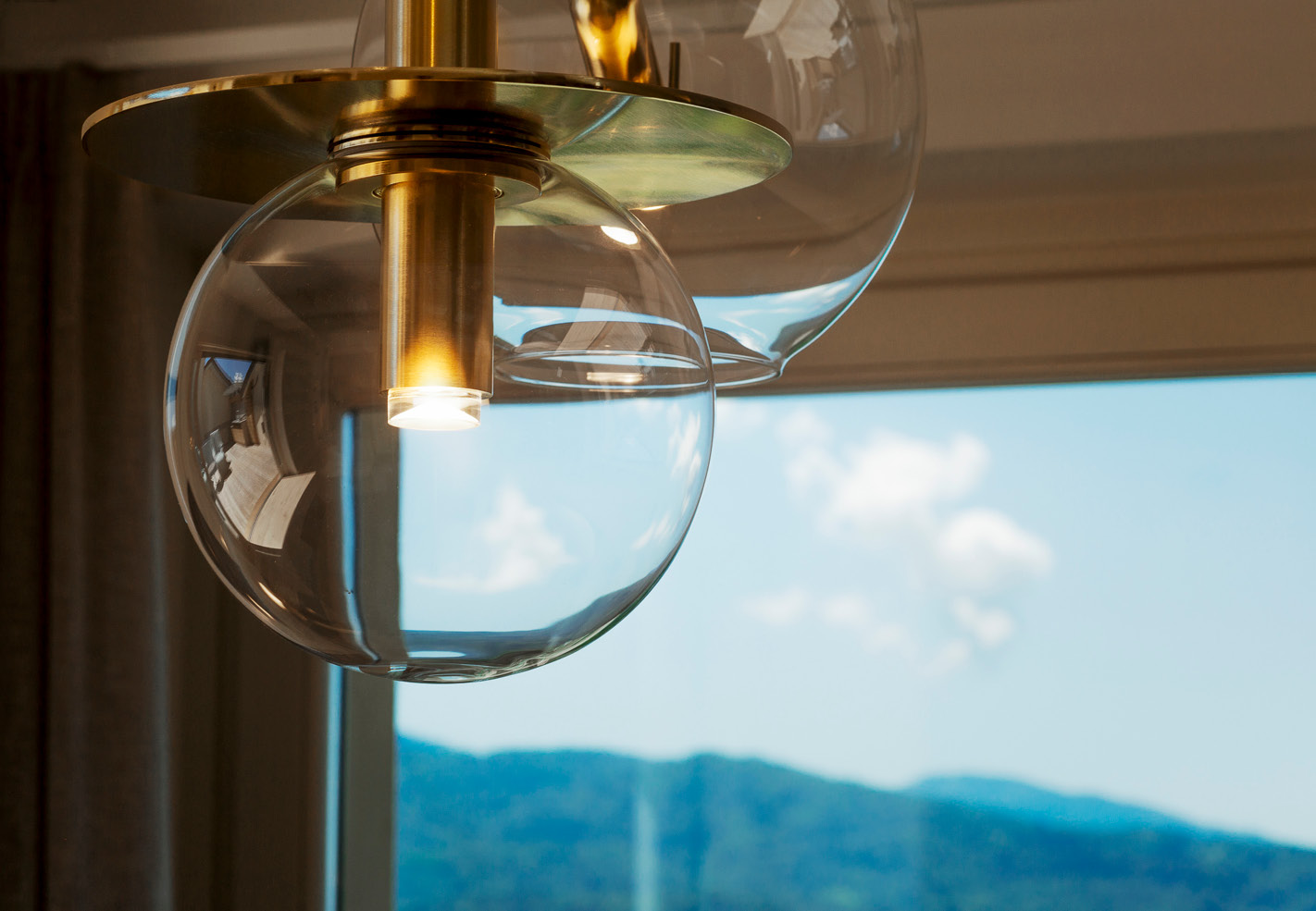 apparecchio di illuminazione a sospensione per interni realizzato in alluminio ossidato. composto da cinghia in pelle elettrificata internamente 1100mm/43.3'' o 2600mm/102.3'' collegata al diffusore tramite un cavo con connettore ‘sottopelle'. modelli: sul, sfera in vetro extra-chiaro diametro Ø175mm/6.8'', disco metallico di diametro Ø255mm/8.8'' e diffusore in cristallo trasparente, disponibile nella versione con rosone diametro Ø55mm/2.1'' h.270mm/10.6'' o a scomparsa totale, sole, provvisto di bulbo in vetro extra-chiaro diametro Ø234mm/9.2'' e diffusore in cristallo trasparente innestato lateralmente, disponibile nella versione con rosone diametro Ø55mm/2.1'' h.270mm/10.6'' o a scomparsa totale, va, composto da campana in metallo diametro Ø55mm/2.1'' per luce d'accento, disponibile nella versione con rosone diametro Ø55mm/2.1'' h.270mm/10.6'' o a scomparsa totale. cablato con sorgente elettronica 2700K Ra95 6,8W 433lm. alimentatore 12V 50-60Hz integrato nella versione con rosone, diametro Ø55mm/2.1'' h.270mm/10.6'', alimentatore escluso da installare remoto nella versione scomparsa totale. eventuali irregolarità del vetro sono garanzia di un prodotto unico, soffiato e realizzato interamente a mano da maestri vetrai. finiture: ottone satinato.
