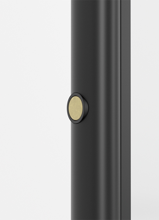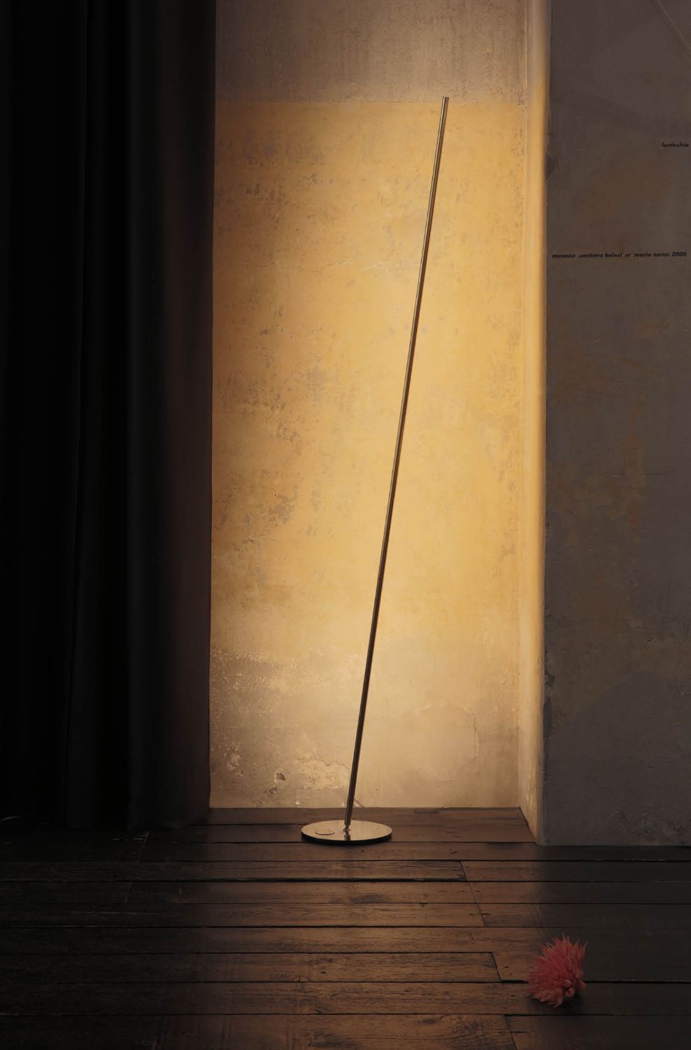 tubino terra altezza h.2000mm/78.7” con base diametro Ø240mm/9.4”, sorgente elettronica 2700K e 3000K 25W fino a 2500lm, corpo orientabile, alimentatore a spina 110-240V 50-60Hz incluso; il sensore touch incorporato nella base permette di accendere spegnere e modulare la sorgente luminosa.