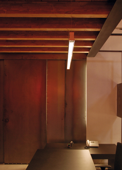 sistema modulare per interni in alluminio estruso ossidato argento opaco o bianco, disponibile nelle versioni incasso, plafone e sospensione. i moduli elettrificati, completi di alimentatore per tubi fluorescenti T5 e diffusori in policarbonato, sono disponibili in quattro dimensioni: 23.6”, 35.4”, 47.2” e 59.1” e alloggiano rispettivamente lampade G5 14W, 21W, 28W e 35W. sono cablati nella versione ‘tutta luce’ dove il diffusore in policarbonato copre tutta la lunghezza del modulo elettrificato creando una linea continua di luce. oltre ai moduli elettrificati sono disponibili profili e raccordi completi di coperchio e accessori (quali tappi di chiusura e giunti lineari).