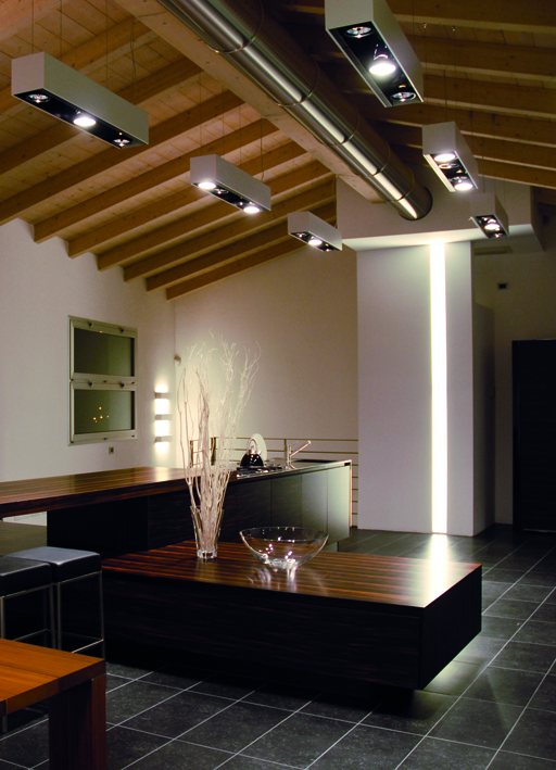 sistema di illuminazione multifunzionale per interni, assemblabile con accessori e cablaggi diversi per offrire al progettista soluzioni illuminotecniche ed estetiche di grande versatilità. disponibile nelle versioni a incasso a soffitto o a parete. realizzato in metallo verniciato bianco, grigio e nero, è predisposto per alloggiare sorgenti alogene e ad alogenuri metallici tra loro intercambiabili.