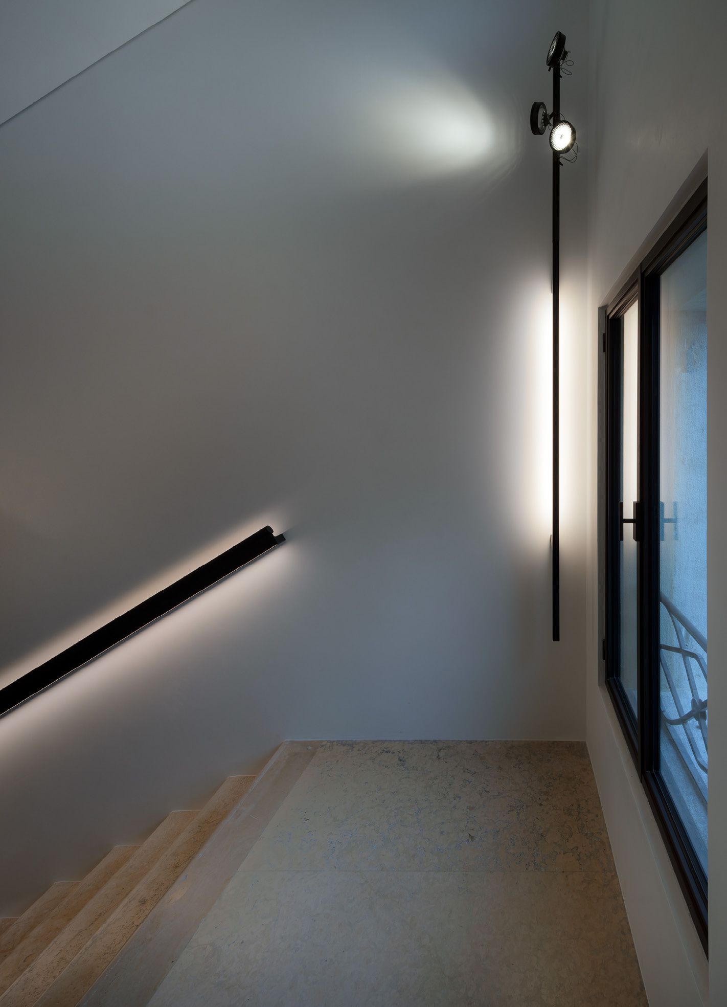 wired with two linear 3000K Ra95 13W/m led sources for direct and indirect light,