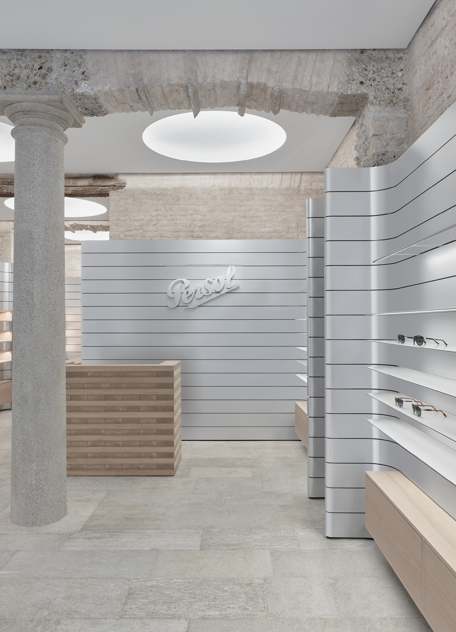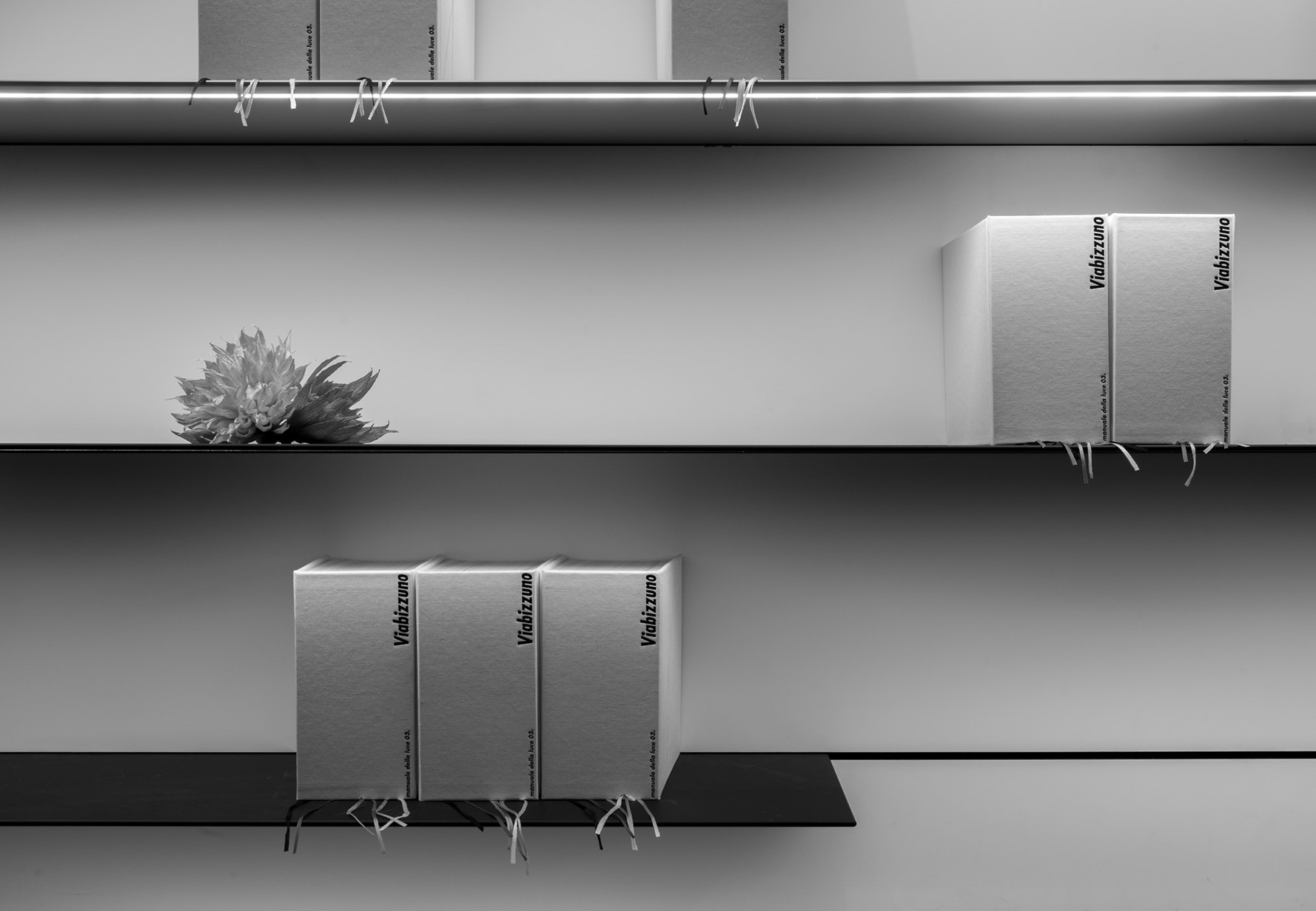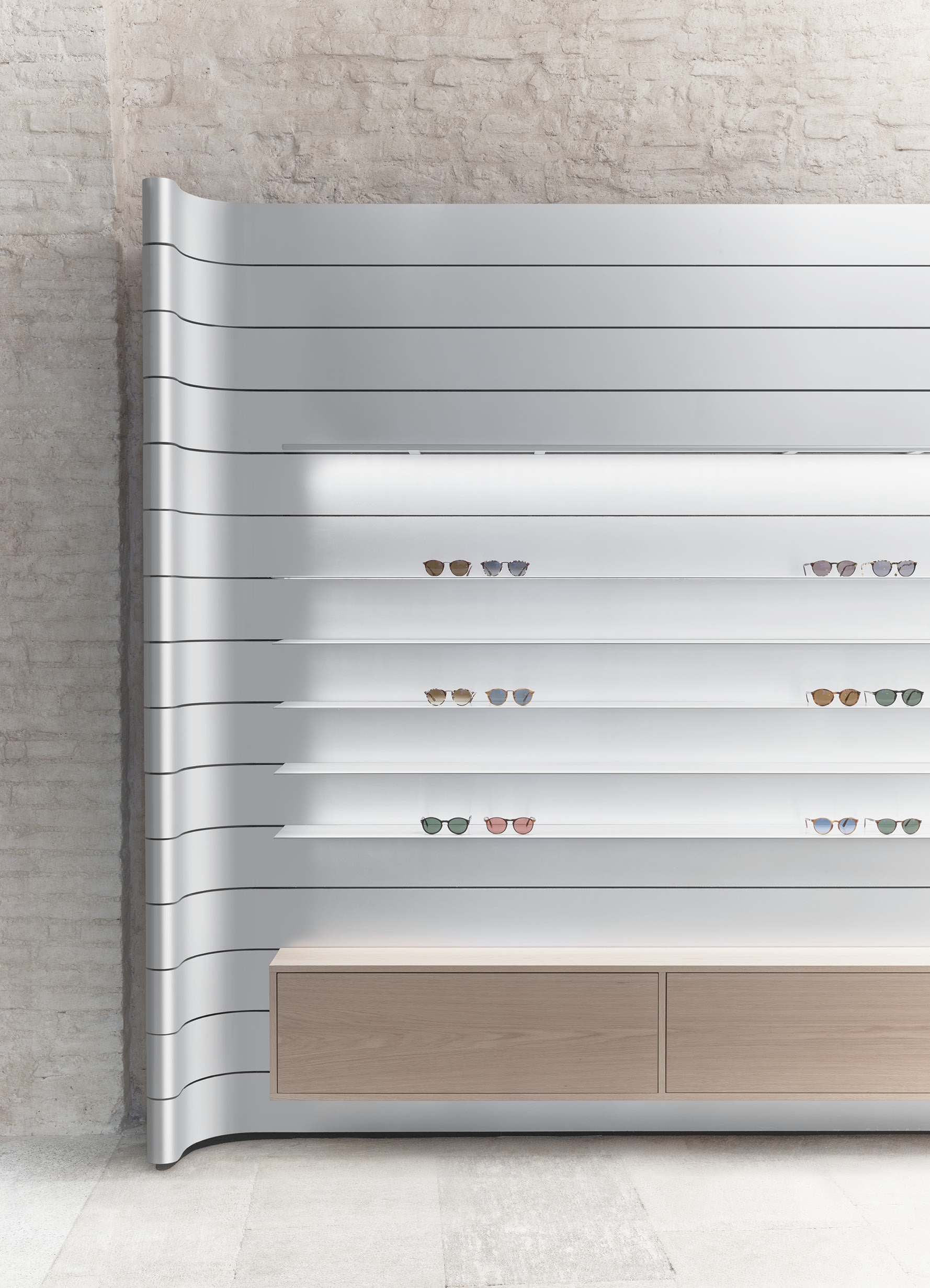 cisei boiserie, size 3212x2222mm with 5-shelf structure made of beech, available with aluminum covers included or only structure for customization by the client.