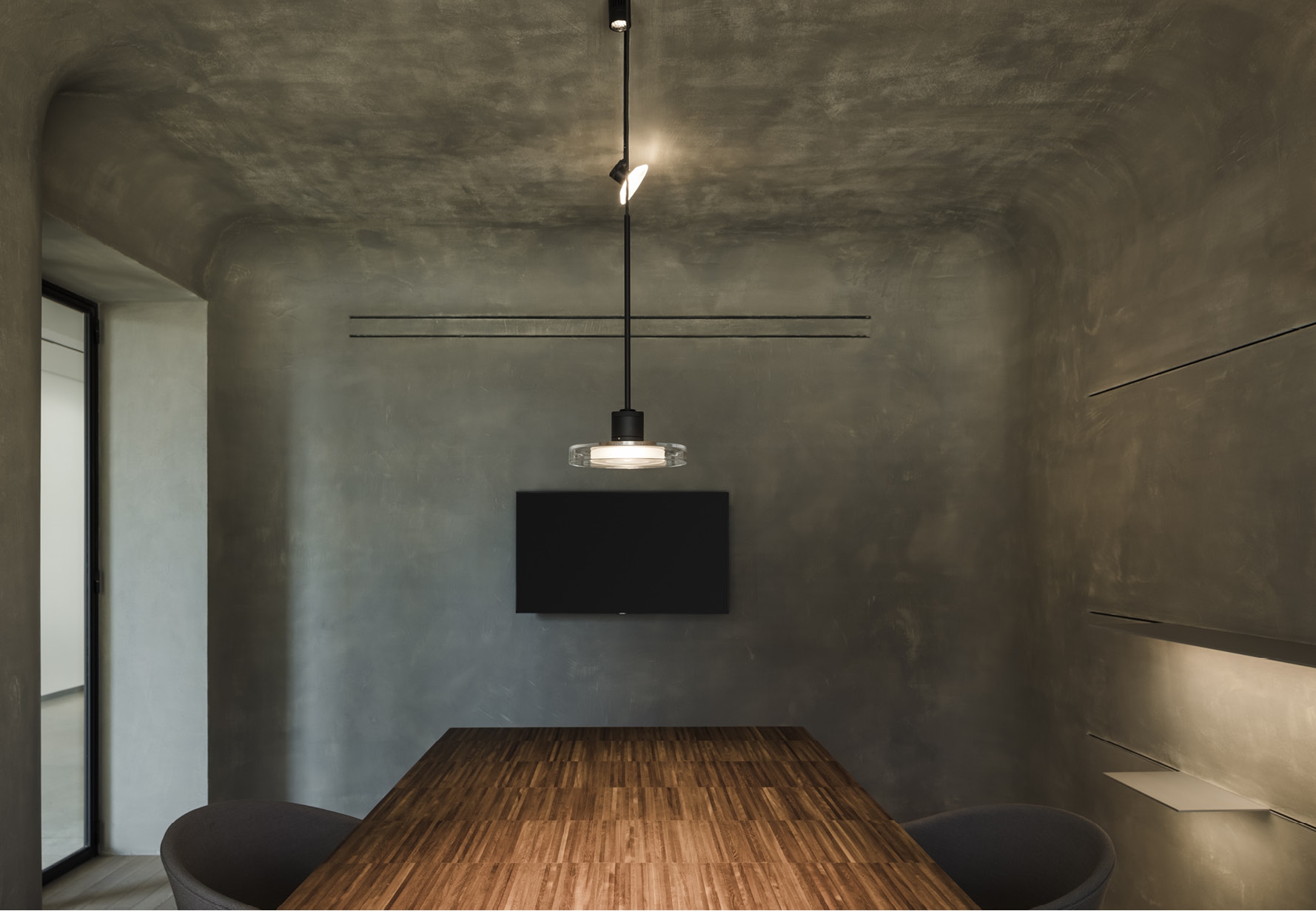 wired with electronic linear indirect light source Ra95 3000K 13W/m 24Vdc, dimmable with remote power supply excluded.