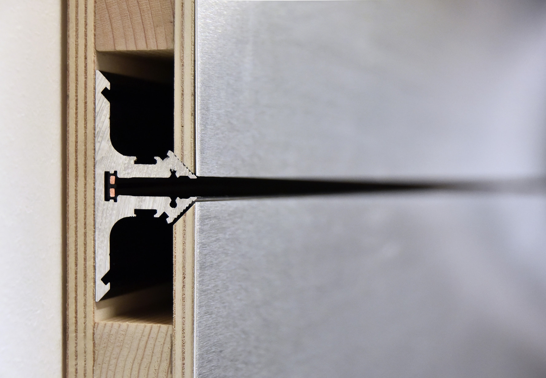 made of black oxidized extruded aluminum with section 3mm2, set to accommodate cable-free quick-connect components.