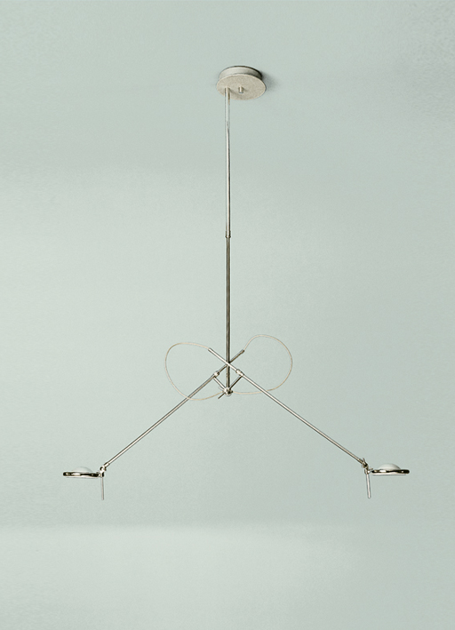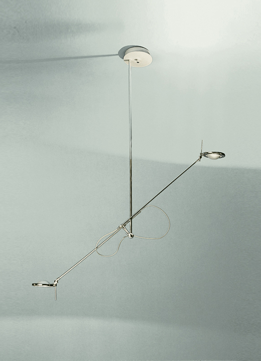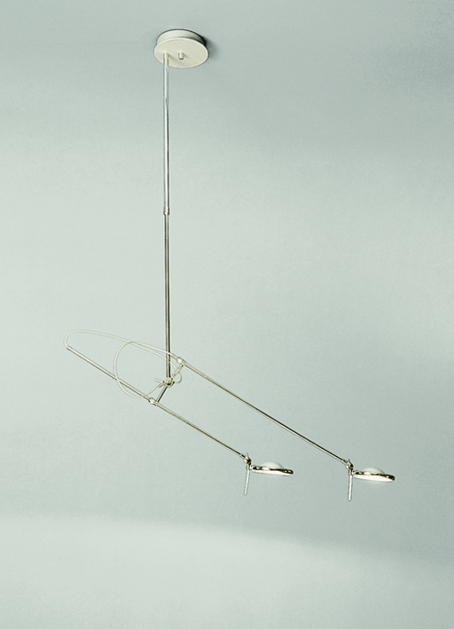 Deckenlampe für Innenräume IP20 aus Messing mit Chromfinish. Diese Leuchte ist mit Teleskoparmen, die bis um 355° drehen können, und mit schwenkbaren Reflektoren versehen, die die Lampe flexibler und eleganter machen. Sie ist für zwei Bipin Halogenlampe 12V 50W verkabelt und ist mit Transformator 105W 230/12V IMQ CE ausgestattet.