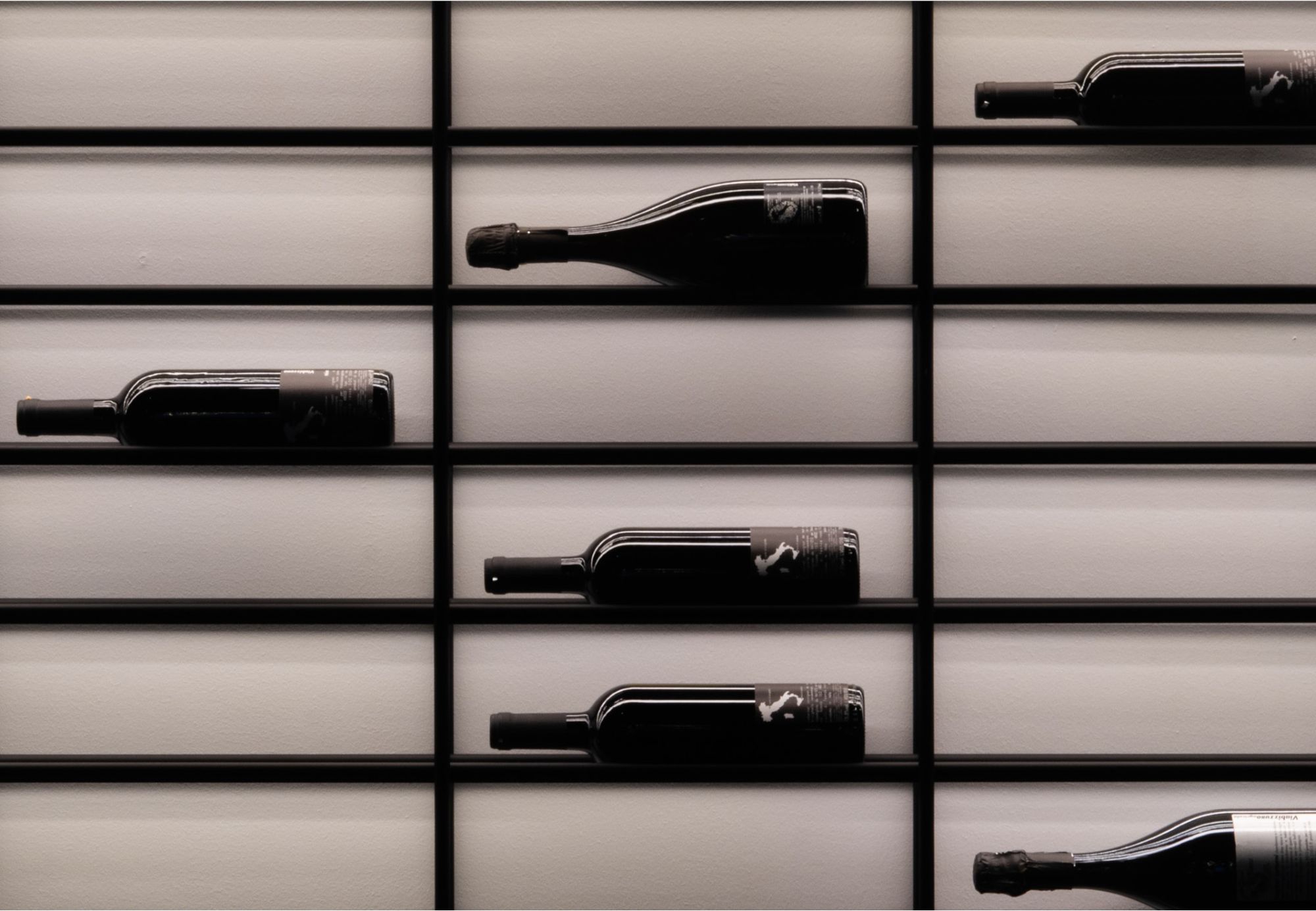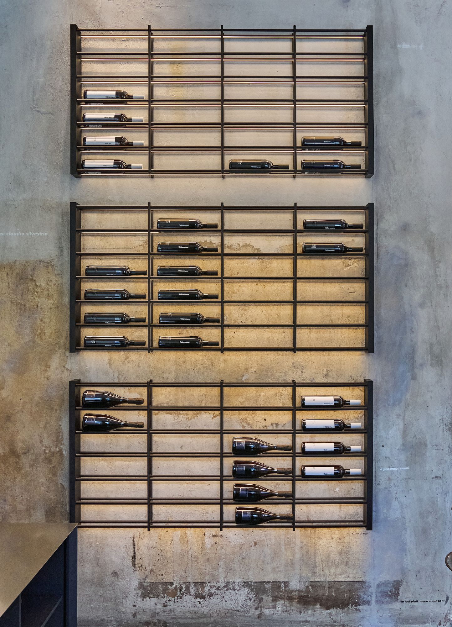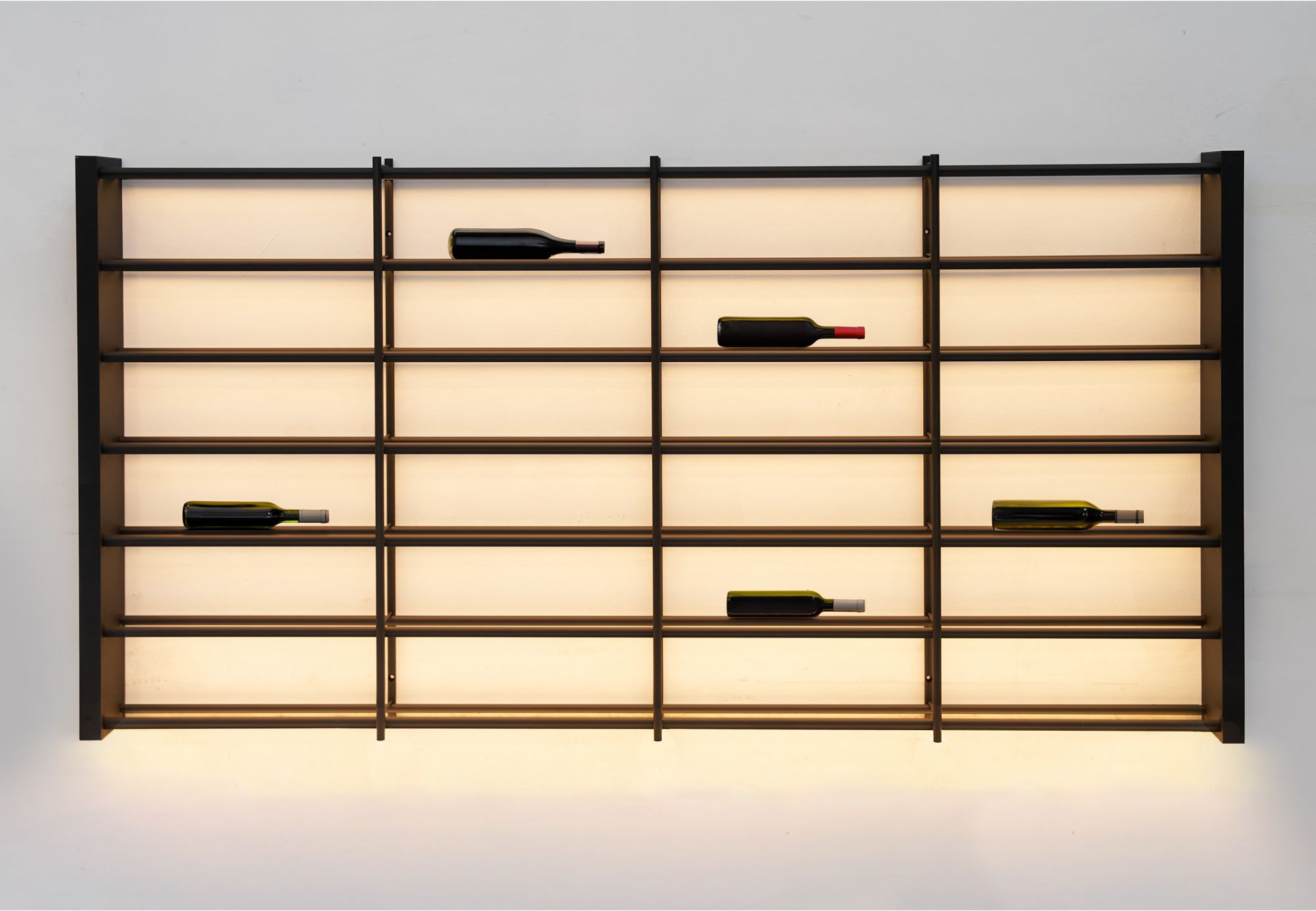 bottigliera 01. 76 bottles, 1577x100x2500mm, 4 modules for 19 shelves, 2x88W.