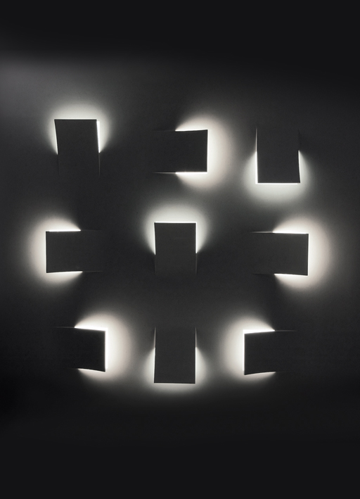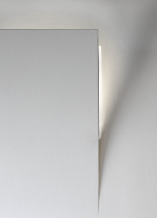 it's obtained an effect of a detached patch of wall that rises to reveal a niche in which the light source, protected by tempered glass, is concealed. the fitting can be applied either on horizontal or vertical surfaces.