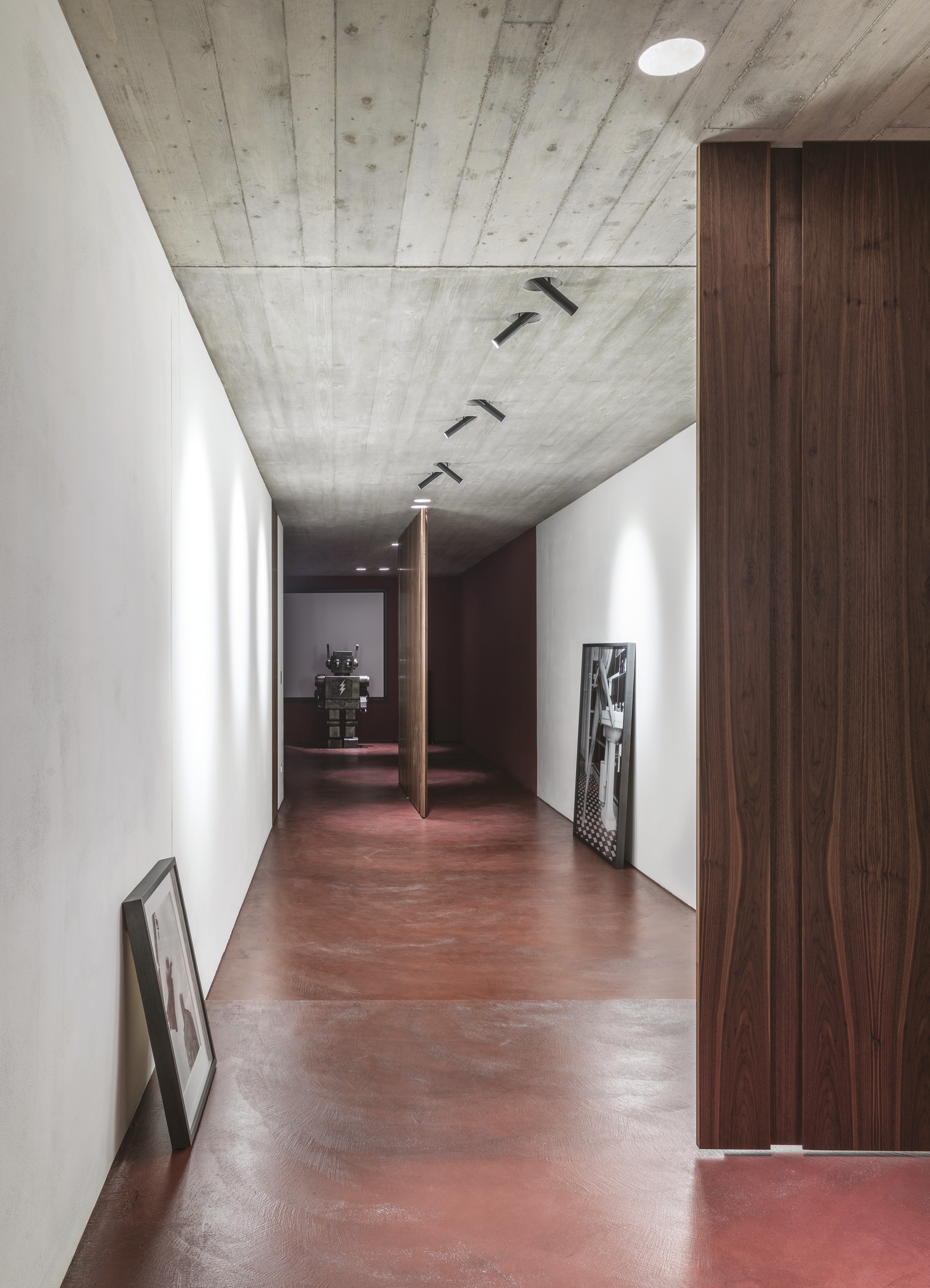 Die strukturelle Hülle wird zum Protagonisten des Raums und hebt die Natur der Materialien hervor. In den Innenräumen wird der gebohrte und geschnittene Beton der Decke und der Wände selbst zu einem integralen Bestandteil der Beleuchtungsvorrichtungen. Das Beleuchtungskonzept bewegt sich auf zwei verschiedenen funktionellen Ebenen: eine ist intimer und natürlicher, die andere technischer und funktioneller.