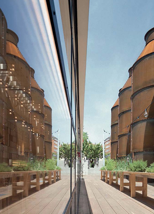 Die sieben Silos: außen sieben identische Gehäuse, innen sieben ganz verschiedene architektonische Darstellungen. Als handle es sich um sieben Personen, sieben lichtbringende Reisende, die sich nach dem Verlassen der Mailänder via San Marco andernorts niederlassen werden, wobei jeder sein eigenes Leben besitzt und in der Lage ist, neue Projekte, neue Werke, neue Funktionen… neue Träume zu hospitieren.