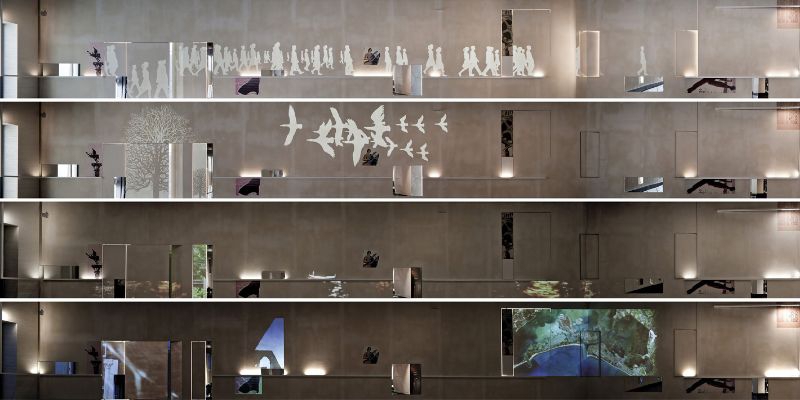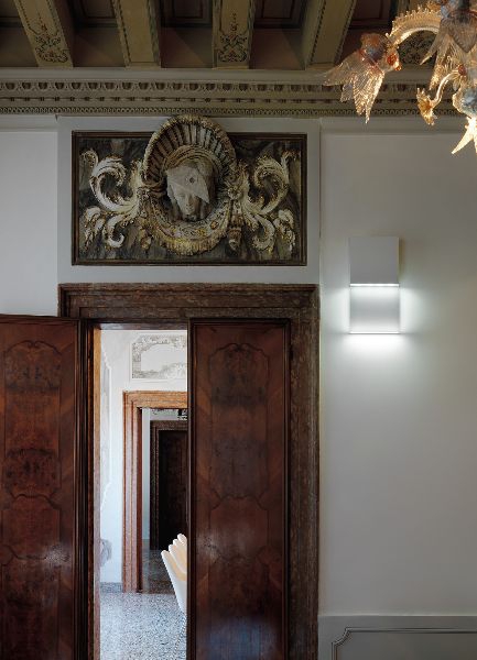 Cà Giustinian (San Marco, 1364/a) ist der historische Sitz der Biennale von Venedig und ihrer Büros. Nach einer gründlichen, drei Jahre dauernden Restaurierung des Gebäudes ist Cà Giustinian nun wieder der offizielle Sitz der Biennale von Venedig. Der nahe beim Markusplatz gelegene Palazzo bietet Platz und Service für die Öffentlichkeit und möchte das ‘Zuhause' der Biennale von Venedig und ein Treffpunkt der Venezianer werden. Ein Ort des Kontakts mit der Stadt und ein Anziehungspunkt für Begegnungen und Veranstaltungen. Im Innen- und Außenbereich öffnen sich heute Räume für den Zugang von Bürgern und Besuchern. Der alte Spiegelsaal im Erdgeschoss mit Blick auf das Becken von San Marco wird zum Ombra del Leone, einer Caffetteria und einem Salon für die Stadt, der für kulturelle Initiativen gedacht ist und in den man Künstler und andere Persönlichkeiten zu Begegnungen mit dem Publikum einladen kann. An diesem Ort hat Mario Nanni ein emotionales und kommunikatives Licht projektiert, eine erzählende Wand, die mit einem seiner Lichtgedichte beleuchtet wird, das dieses Mal seine Inspiration von den Salzwiesen, von den aufgetauchten und untergetauchten Gebieten der venezianischen Lagune, von den Perspektiven der Gassen, vom Licht des venezianischen Graus und vom langsamen Ablauf einer aus Schritten und Blicken gebildeten Zeit in der Stadt bezieht. Der Rest des fünfstöckigen Gebäudekomplexes wurde von Viabizzuno nach einem maßgeschneiderten Projekt für die verschiedenen Räumen beleuchtet, denn genau wie ein Wohnhaus setzt sich Cà Giustinian aus verschiedenen Bereichen mit unterschiedlichen Funktionen und unterschiedlichen Apparaturen für den Betrieb des ganzen Organismus zusammen