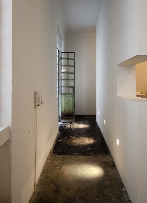 In diesem Raum findet man einige Objekte und Produkte der Marke Extra, die zusammen mit zeitweise im Ausstellungsraum untergebrachten Objekten, Bildern und Skulpturen gezeigt werden. Vier quadratische Tische mit 180 cm Seitenlänge werden zu echten Labors zum Konsultieren von Materialien und zum Experimentieren; aus einem Spiel von Kulissen und waagerechten Schnitten entstehen Arbeitsbereich, Empfang und Büros. Der Ausstellungsraum im Untergeschoss hat eine andere Funktion: die ständige Ausstellung eines großen Teils der Kollektion Extra. In dieser Kollektion finden sich auch die von Mario Nanni entworfenen primären Gebrauchsgegenstände: das von Piavevetro hergestellte Fenster mnpv1, der Tisch piano veloce, die von Extra produzierten la seggiola und riposami, das von Rapsel hergestellte Waschbecken foglio d'acqua. Das klare, lineare und einheitliche Produkt, das in reinen Weißtönen ausgestellt ist, und der Raum, vollständig roh belassen und von der Zeit und den über die Jahre abgewickelten Tätigkeiten gezeichnet, schaffen einen einzigartigen Kontrast, eine Emotion ohnegleichen, und werten sich gegenseitig auf. Der auf das Wesentliche reduzierte Raum enthält also die Produkte und das Licht, die sich gegenseitig ergänzen und eine bühnenartige Atmosphäre schaffen.
