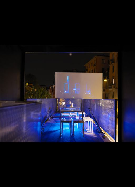 il camion progettato da mario nanni è uno spazio pensato come ad un'officina di idee, progetti, intenzioni e azioni, una casa in movimento dove protagonista è la luce, il calore dell'accoglienza, la possibilità dello scambio, del confronto, l'invito ad entrare e ad impossessarsi di ogni angolo per abitarlo.