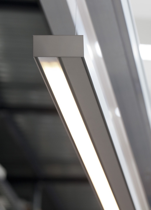 the profile is made of two opposite 36mm wide grooves which can house kits for direct and indirect light, and 3x6mm wide grooves for direct light.