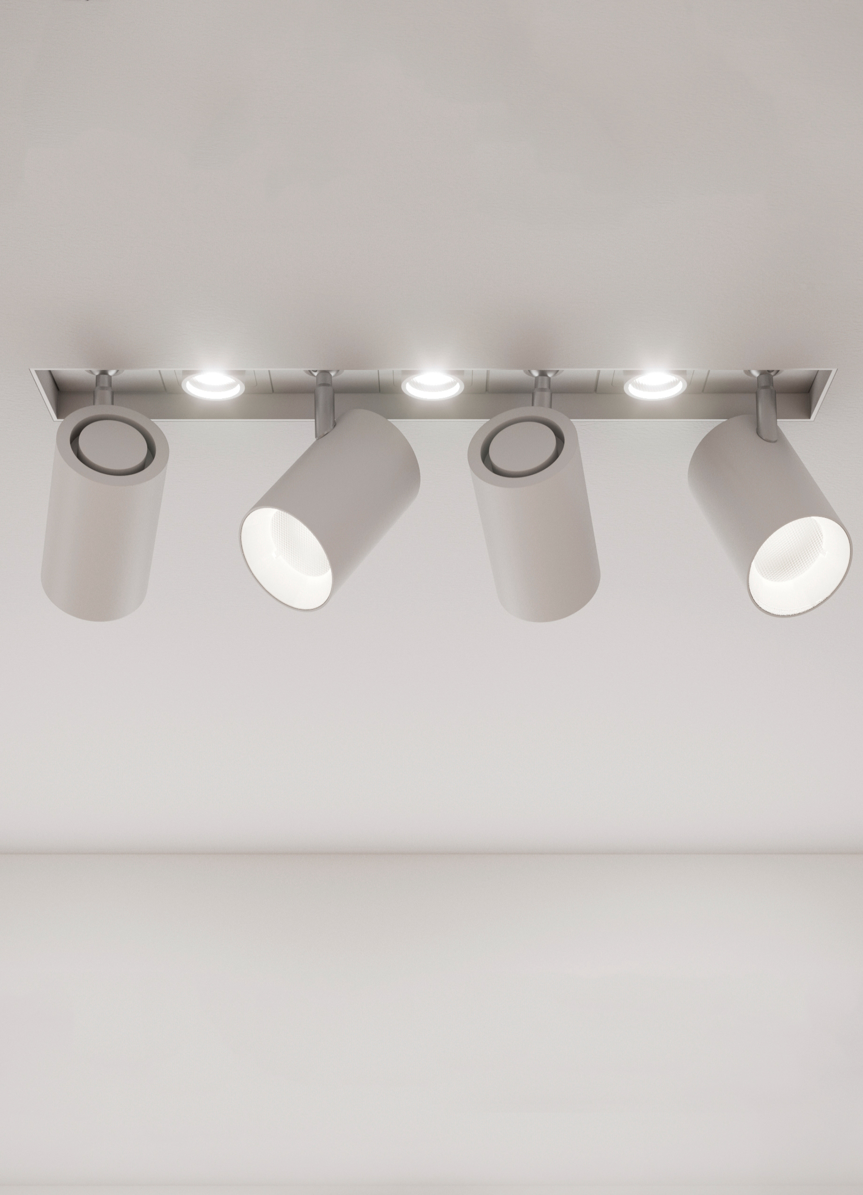 IP20 rated modular light fitting for indoor use to be installed on ceiling, wall,