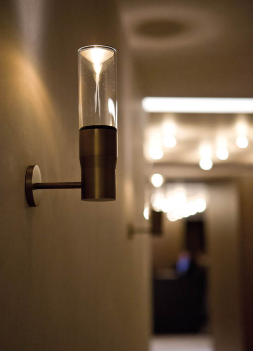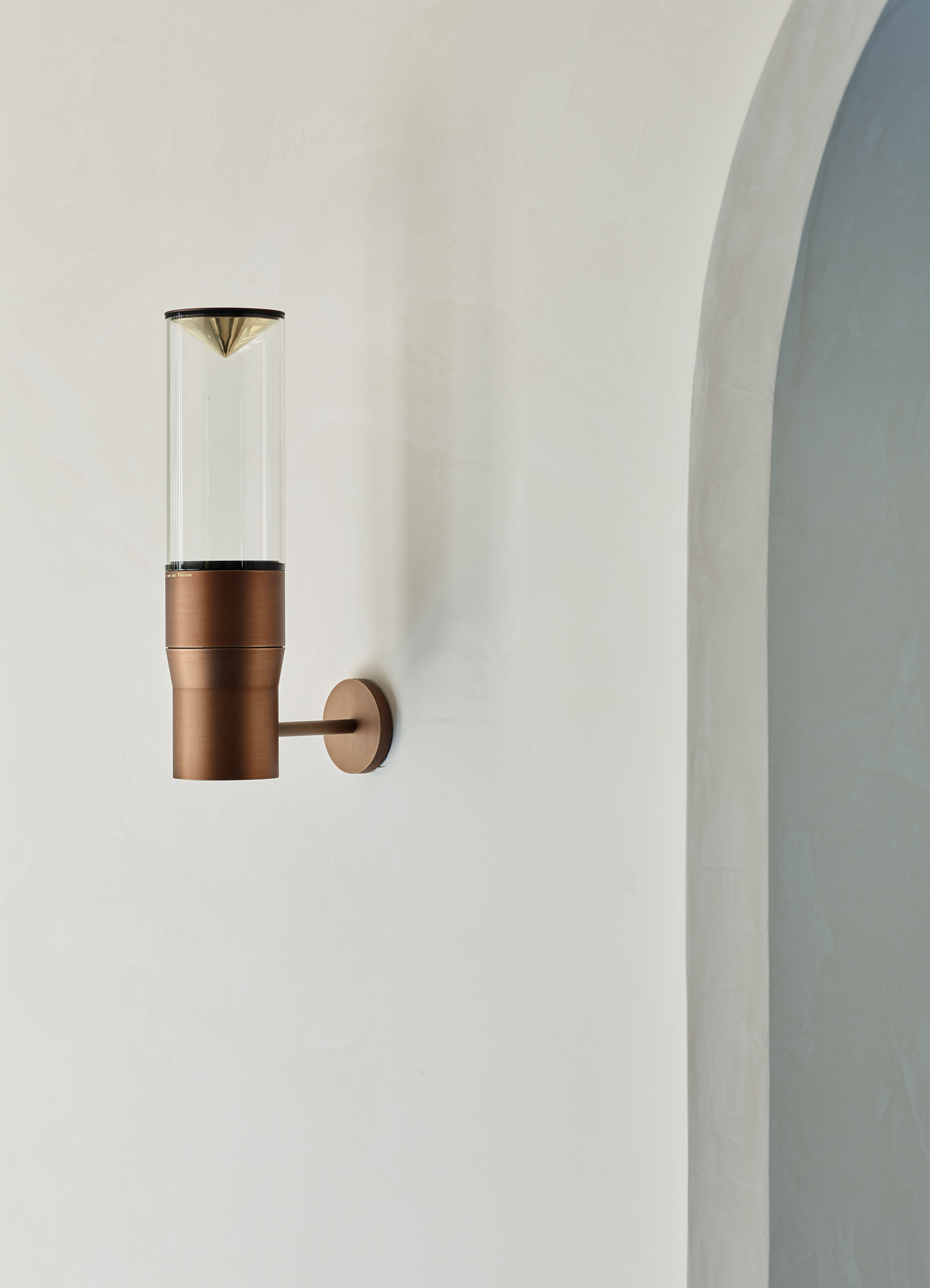 consisting of a splayed cylindrical body and a transparent pyrex cylindrical glass which is closed by means of a reflecting brass cone, with wall fixing plate diameter Ø65mm/2.7’’.
