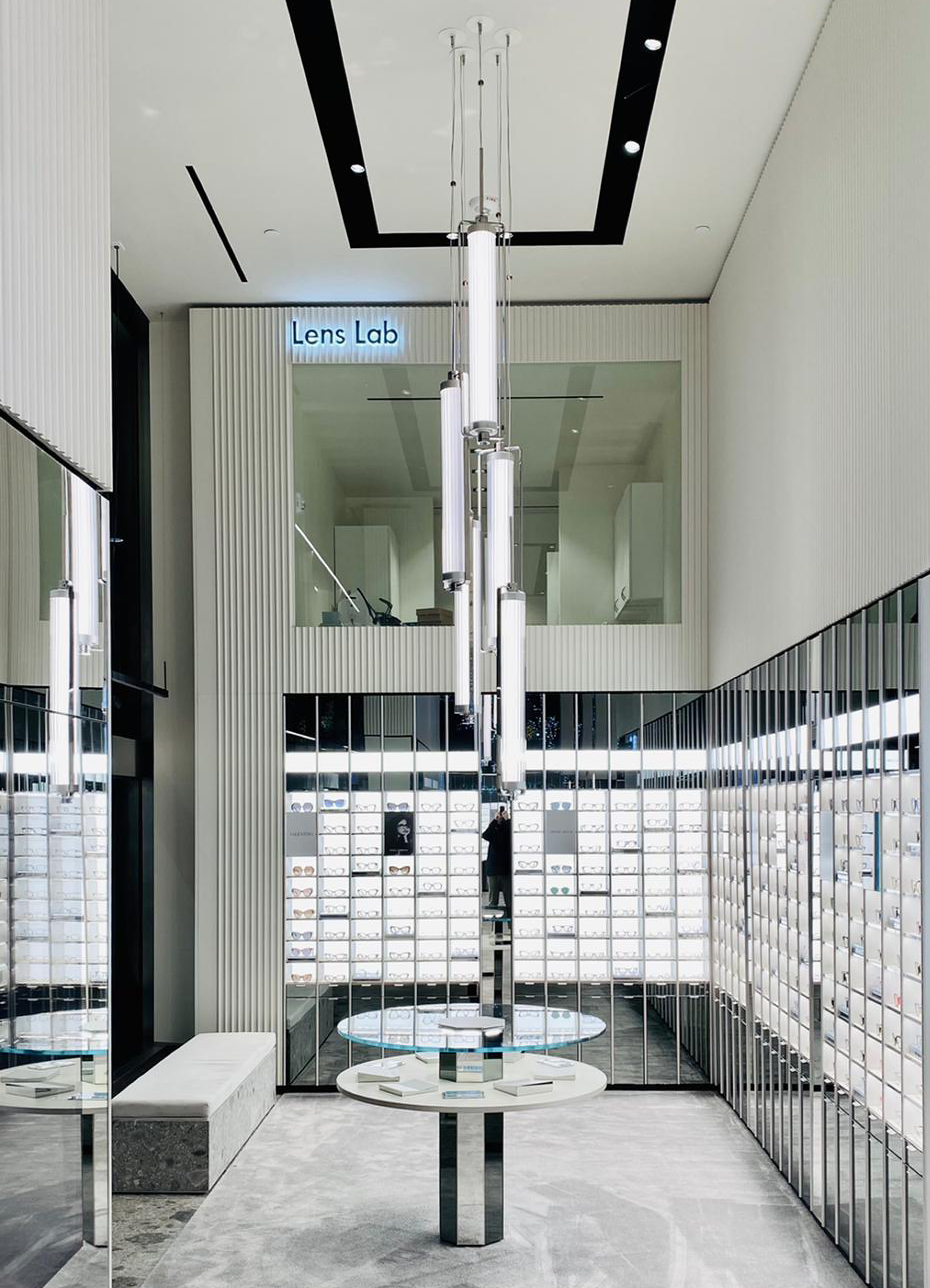 made of oxidized aluminum with glass cylinders Ø125mm/4.9” internally grooved.