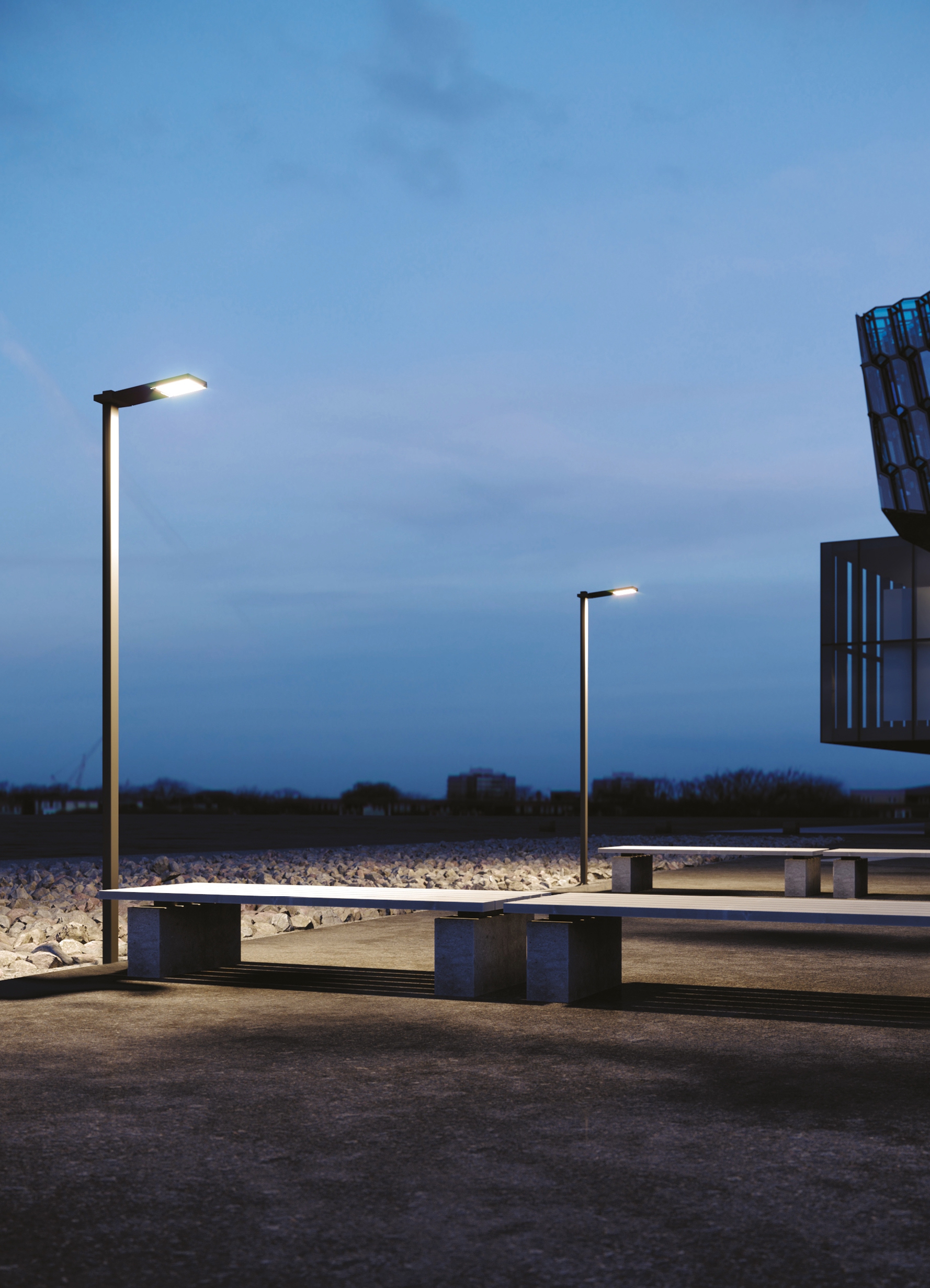 wired with 3000K 53W 3700lm for diffuse light led source and 47W 6385lm for street and asymmetrical light, protected by an extra-clear shock-resistant glass screen.