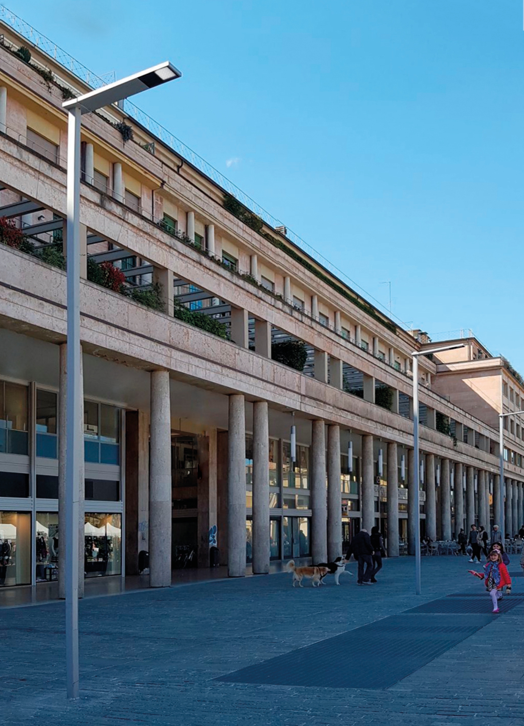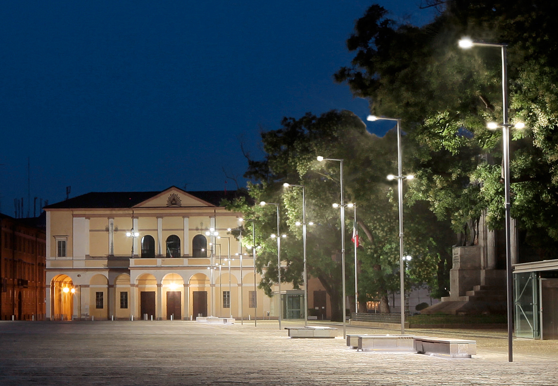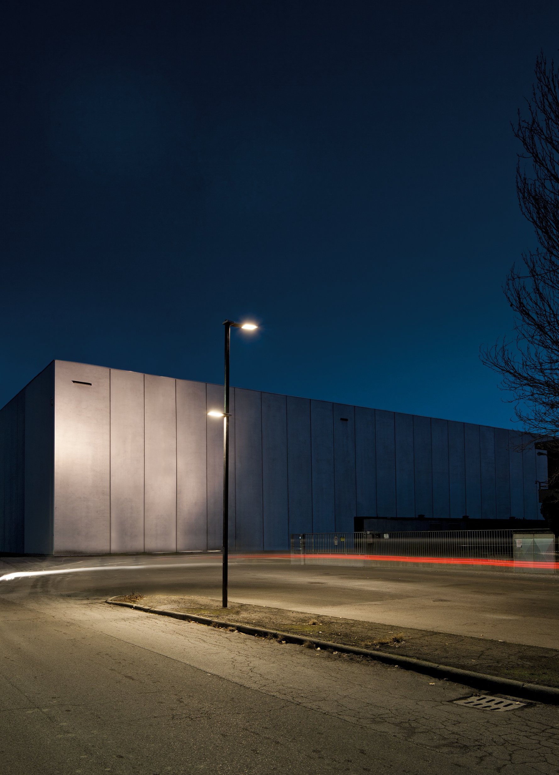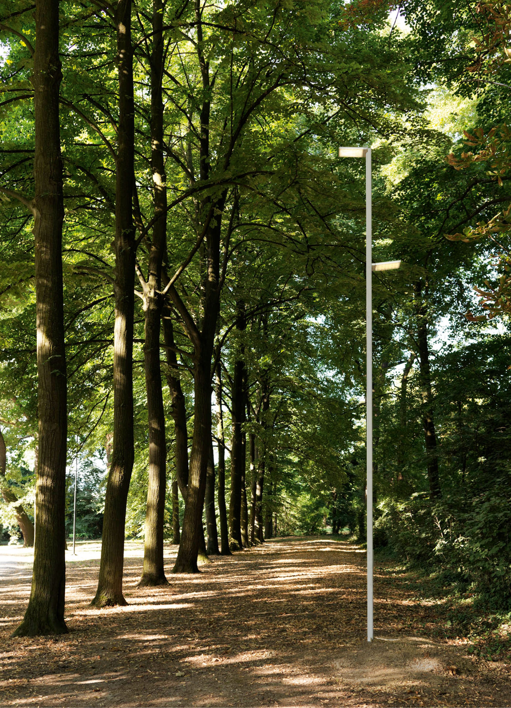 made of oxidised aluminium extrusion, which can be mounted on a hot galvanised and powder polished pole with 80x80mm section or on a wall by using specific components.