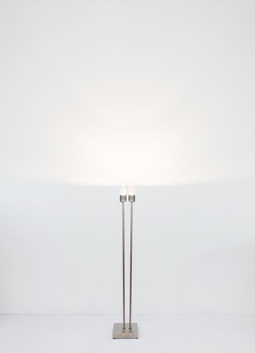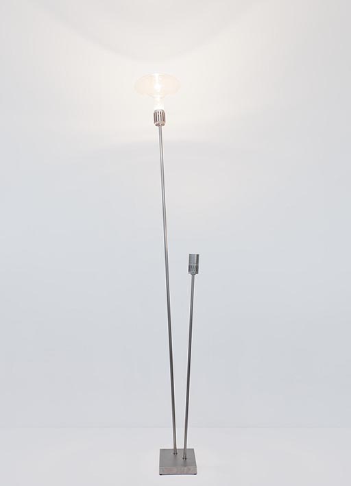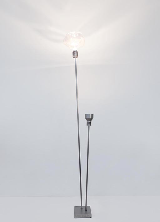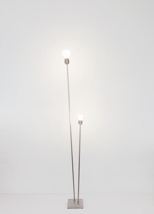 IP20 rated table light fitting for indoor use, made of oxidised aluminium and powder coated zamak alloy. consisting of a 200x200mm base where two diameter Ø13mm h.1000 or