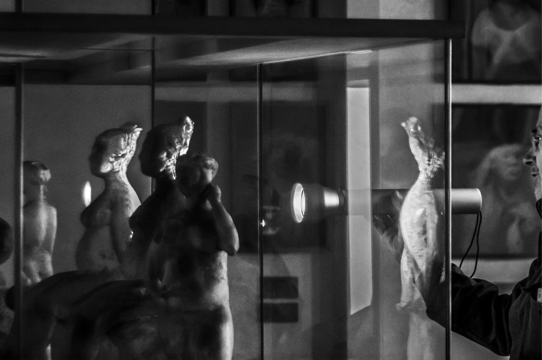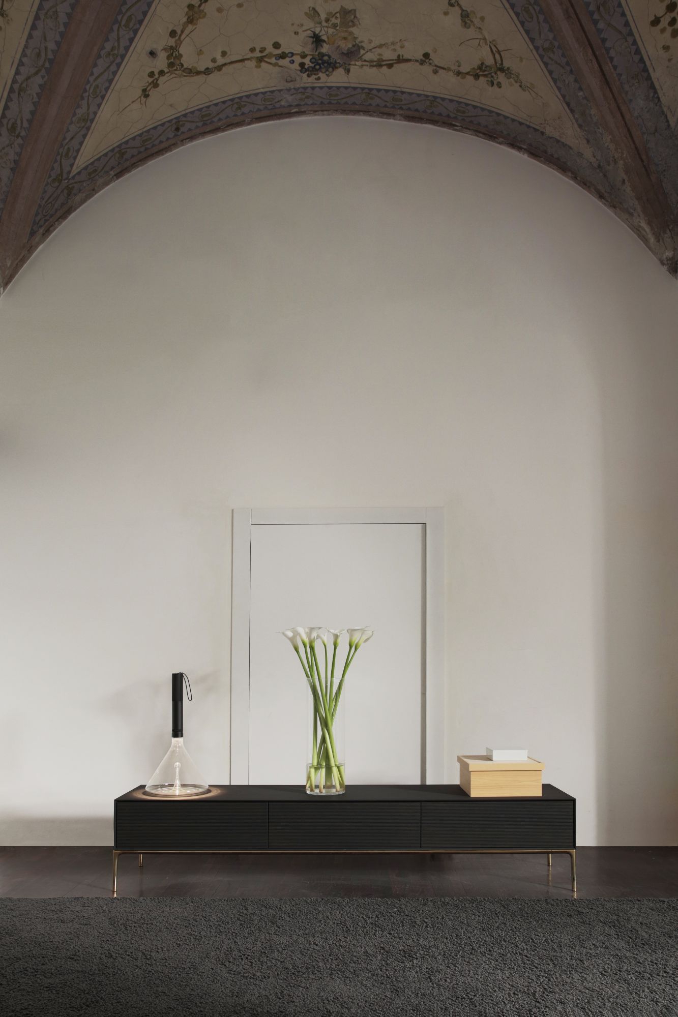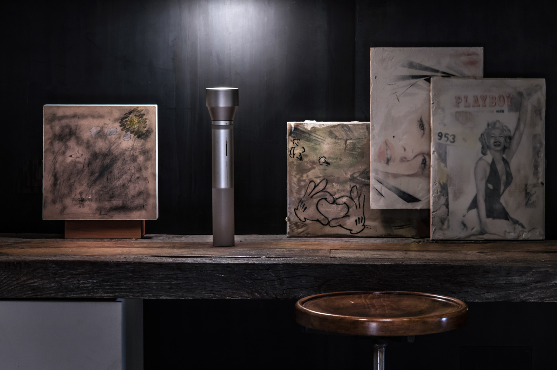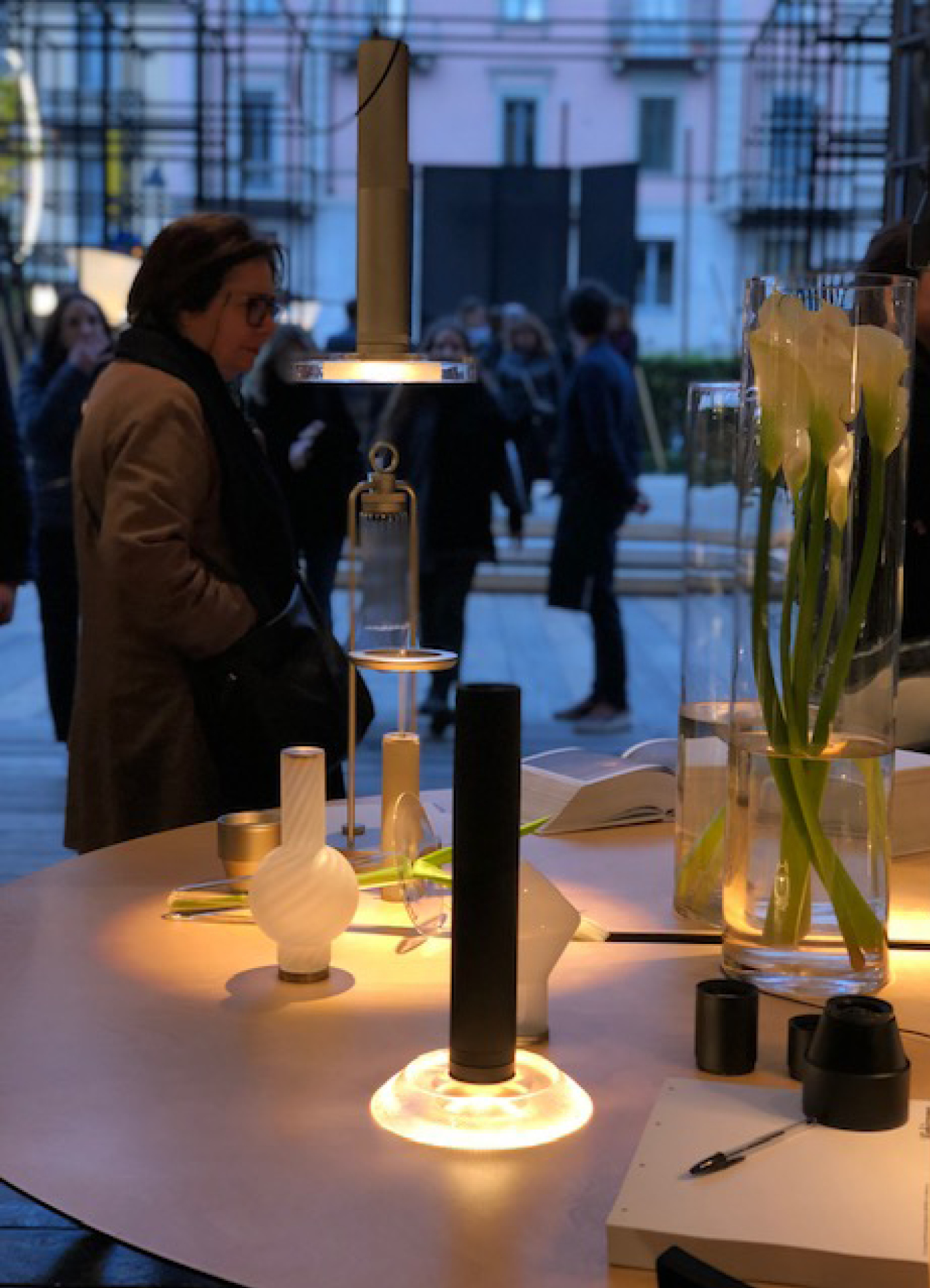 made of oxidised aluminium, it consists of a frosted cylinder acting