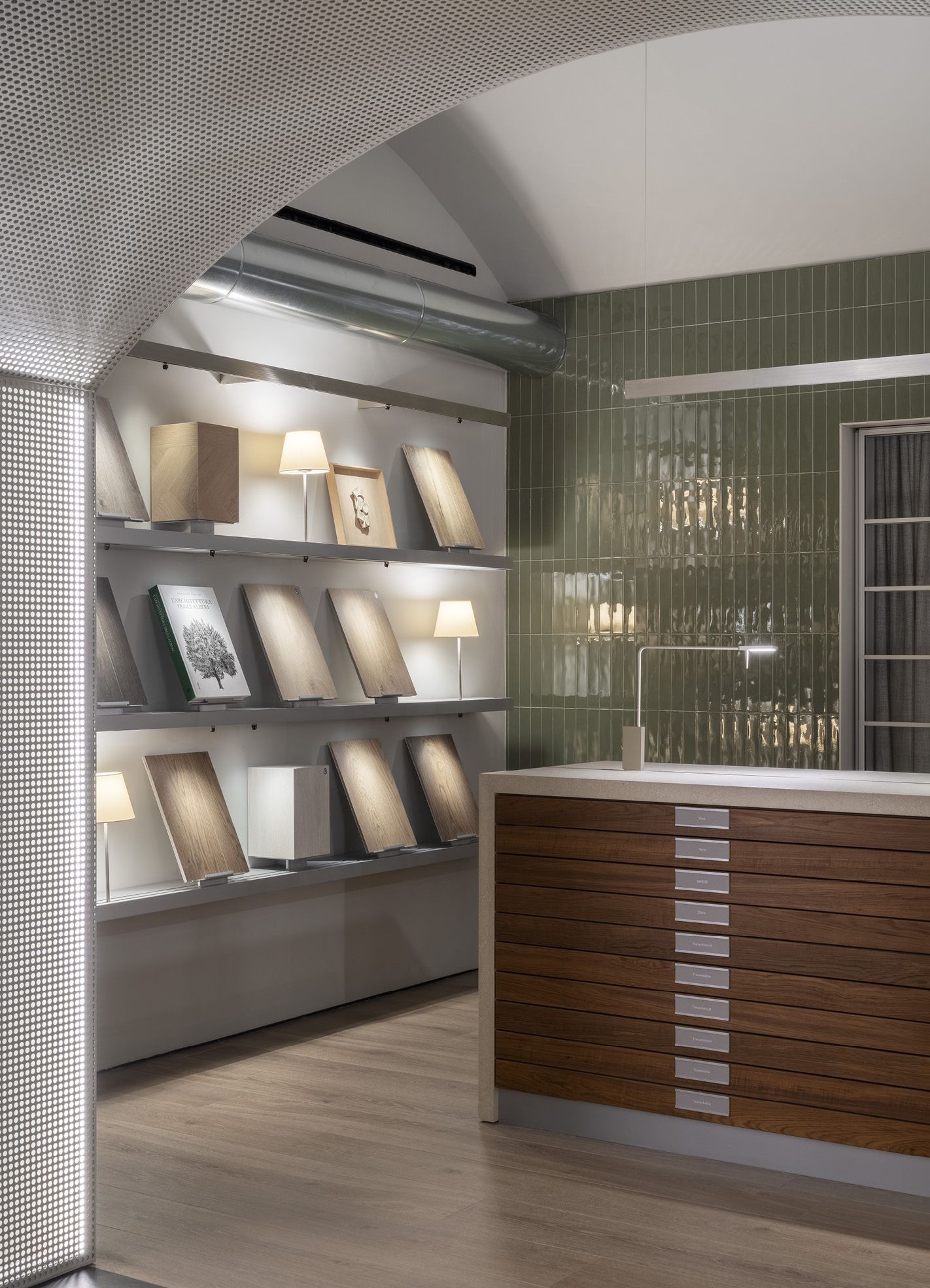 wired with three 3000K led sources which can be separately dimmable using a linear potentiometer: 36W 3138lm indirect light, 22W 2112lm linear direct light, 11° 2x2.2W 2x148lm spotlight.