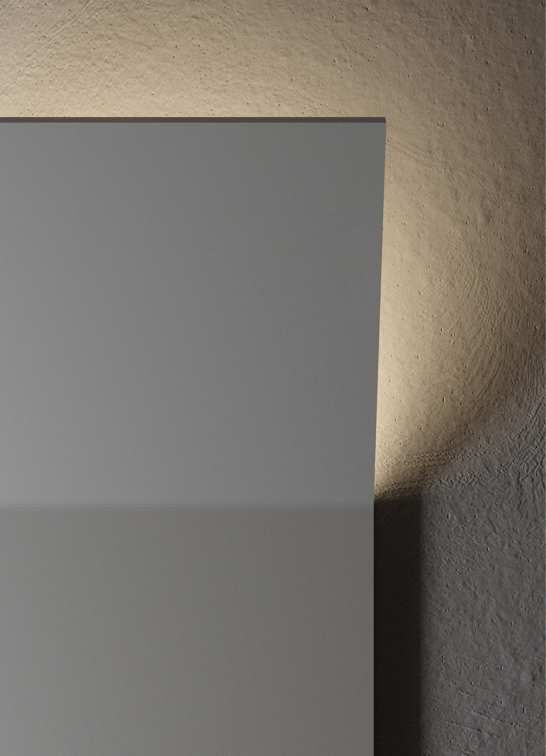 made of powder coated aluminium, it can be installed inside a brick or plasterboard wall with his housing.