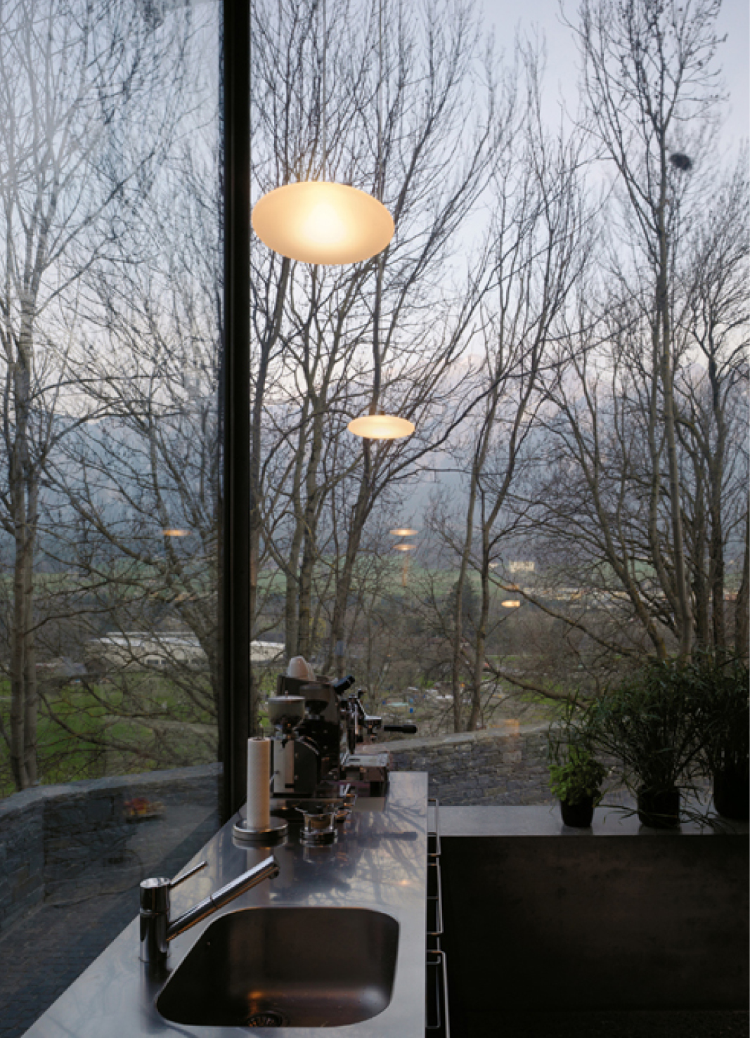 consisting of oxidised aluminium and handmade blown glass, sanded both on the inside and the outside.