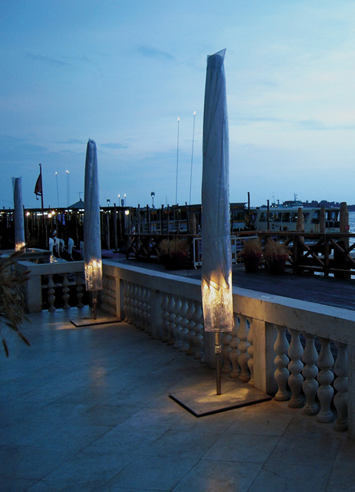 components: power supply and control unit available for synchronous remote control or from ombrella maestro for remote dmx control, AISI 316L stainless steel square base or ground anchor.
