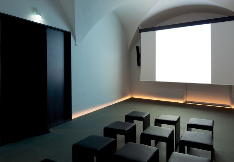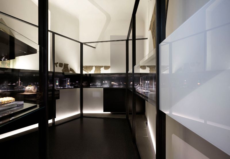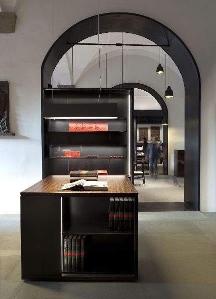 gucci celebrates its past by looking at its future opened on september 26th 2011 the gucci museum is born to celebrate the first 90 years of the florentine maison by opening wide the doors of its historical archive to the city where it all began. from the suitcases produced by the first workshop opened in town by guccio gucci, in 1921, to the latest collections designed by frida giannini, creative director of gucci. the brand with the florentine heart chose the historic and prestigious palazzo della mercanzia, located in piazza della signoria in florence, to tell its story to the world. the building rises in the ancient roman theater area, whose ruins were also discovered in the basement of palazzo vecchio, and was erected following a resolution in 1359 on the model of the near palazzo degli ufficiali della condotta dating back to 1337. on the façade is placed a bas relief depicting the blessing christ, beneath of it stands the inscription omnis sapientia a domino deo est (from the lord comes all the knowledge), and the copies of the twenty one crests of the arts and the one of the tribunale della mercanzia with the lily of florence. the original crests are kept at the museum ground floor, which is now used as bookshop and restaurant. the building reopens to the town becoming not only a space for exhibition and narrative of the craftsmanship which is typical of this city, but is also a space of hospitality, acceptance; city space. the building becomes permeable and welcoming and the light design emphasizes this will: from piazza della signoria one perceives the entrance and the hospitality areas thanks to a light that breaks through the boundaries of the architecture. the windows has been made by a mario nanni’s special project: la luce dell’aria. a patented system which integrates light in the frames. the glass is no longer a barrier, rather a sheet of light, no longer a boundary, rather an opening to be crossed. to enter the building means to enter the gucci house: a world made of objects, accessories, books, symbols, culture, substance of the image. the hospitality areas at the ground floor are characterized by rest places: to eat, to read, to observe, to taste are actions for which light has been designed. a long table cuts longitudinally the reading room and the light fitting la barra d’oro designed by the architect peter zumthor allows an accent warm light to be along all the table surface: positioned downwards when one reads, upwards when one eats. the flexibility of this light fitting, which thanks to a sophisticated total recessed latch system may be lifted or lowered with a finger, adapts itself perfectly to the flexibility of this space where the guests take their seats throughout the day on several occasions. the dining area is instead characterized by square tables over which are sospended the light fittings signoria designed by mario nanni specifically for this project. a tribute to the city of florence, to the square on which one looks out from the building, to the florentine architecture and to its greatest master: brunelleschi. the dome of santa maria del fiore is the shape that has inspired this light fitting, simple and rigorous in its outside matt black finish (Viabizzuno my nero) and precious and rich inside with its natural brass cap which generates a warm accent light that is ideal for eating. in the bookshop area the light fitting by the master zumthor is replicated, but in its smaller version, la tagliata: ideal to illuminate the books displayed on the desks in the middle of the hall. the three parallel rooms (reference room, restaurant and bookshop) are characterized by wide wall bookcases which make the spaces more comfortable. on the shelves a particular light fitting called segnalibro allows the correct lighting of the displayed volumes and at the same time makes the graphic useful for recognizing the themes and categories under which the books are positioned. the wall gets illuminated with a graphic sign which makes the books the protagonists of the interior façade by making completely disappear the light fitting: totally integrated with the shelf unit. to give great flexibility to the spaces and remaining loyal to the historical elements of the building mario nanni has patented on this occasion a new system for the distribution of design plants: ai tuoi piedi. a modular system made of extruded aluminium conceived for the distribution of cables and electrical components inside the floor; totally inspectable and totally recessed thanks to the cover of this system which is designed to be coated, up to a 10mm depth, with any finish of the pavement (stone, wood, marble, ceramic…) integrating itself totally with the room. ai tuoi piedi is characterized as an architectural line, a stroke in the space and allows to ‘wire the rooms’ even when one has to preserve historic buildings. ai tuoi piedi has been designed both for the distribution needs in the centre of the room and for the cases in which a side distribution is needed, like the one in the cinema room on the first floor, in which the line of the light that emerges from the side profile emphasizes the architectural space and at the same time allows the correct housing of the cables for the sound, video light systems. the ground floor south area hosts the first part of the museum itinerary: the beginning of the gucci’s history and the first icons that made the brand famous. the permanent exhibition of the gucci archive is devided into different theme rooms, dedicated to the history and the creation of the maison, along with a series of contemporary art installations (for the opening the building hosted the artist bill viola) specifically selected with the pinault foundation), to retrace the whole history of the florentine fashion house. the floors in which the museum opened to the public is developed are three, while the basement of the building is closed, sealed like a caveau which holds the gu