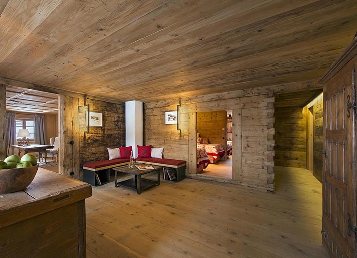 built in 1597, this building is one of the oldest farmhouses of lech, a small village in the austrian alps. originally divided into small rooms, the building has been totally reconstructed on all three floors and transformed into a flowing spatial continuum and rented as a chalet, with breathtaking views of the surrounding mountains, just a stone's throw from the ski slopes.