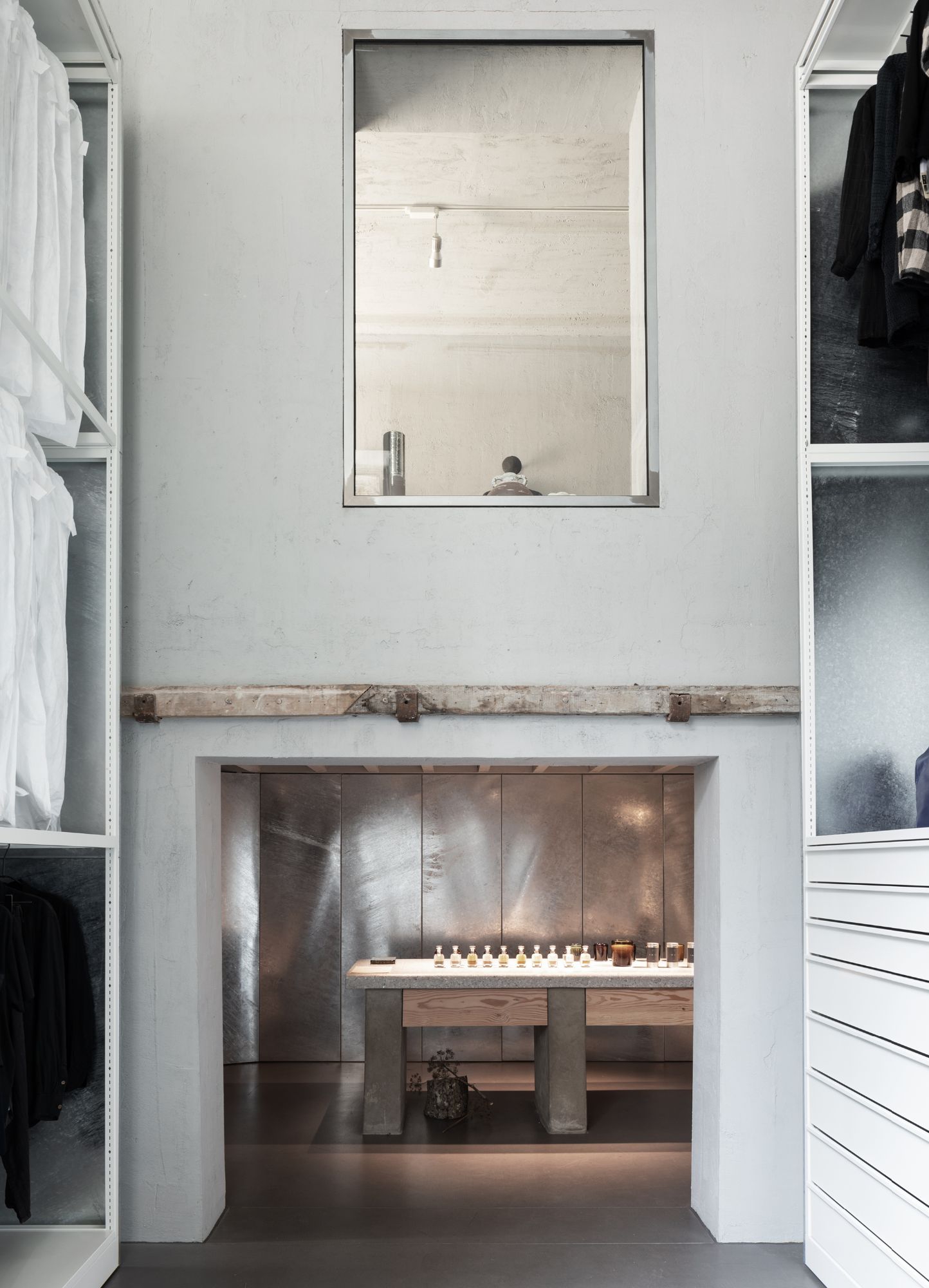 in the basement, a double-height archive houses the unmistakable collections of hostem clothing.