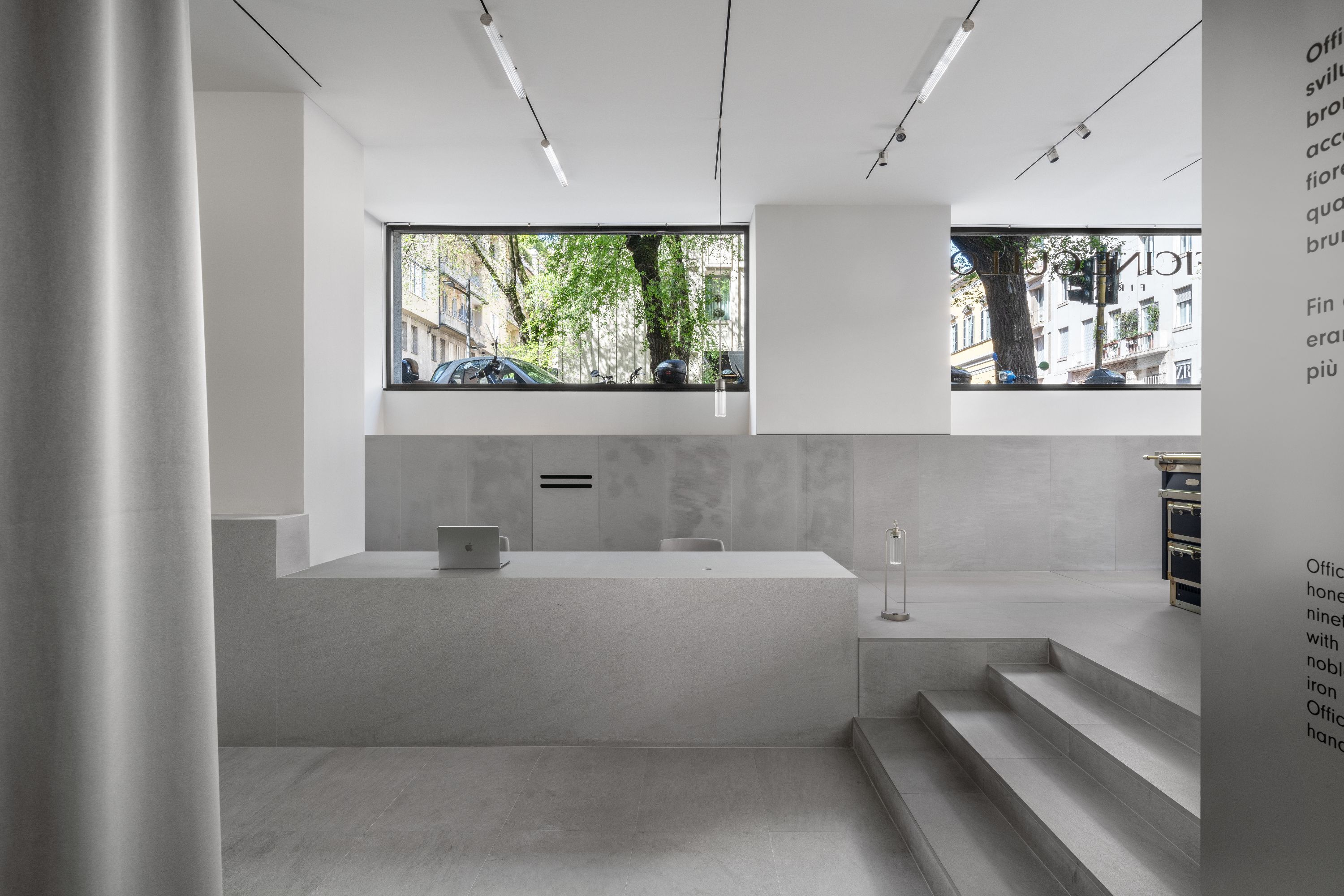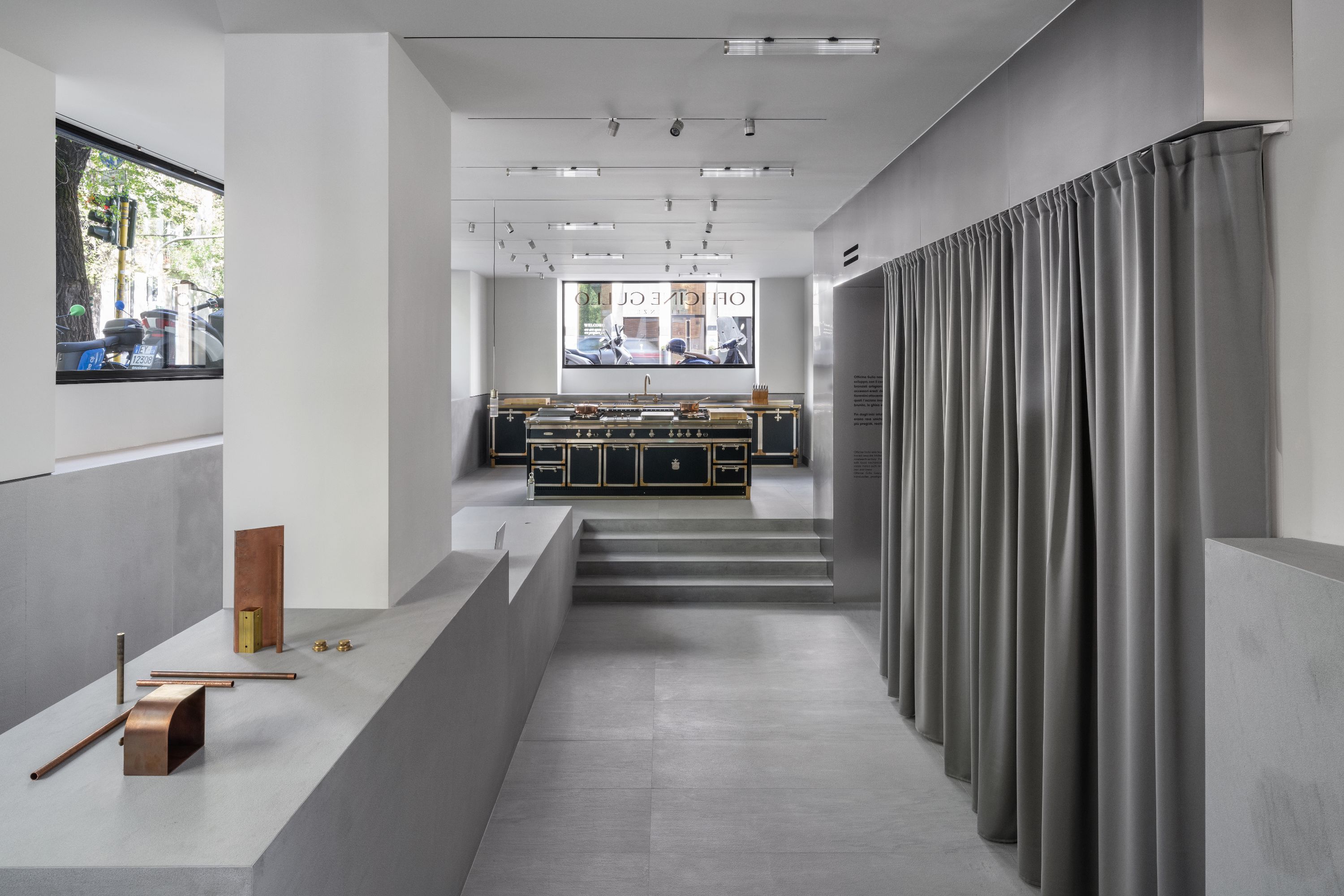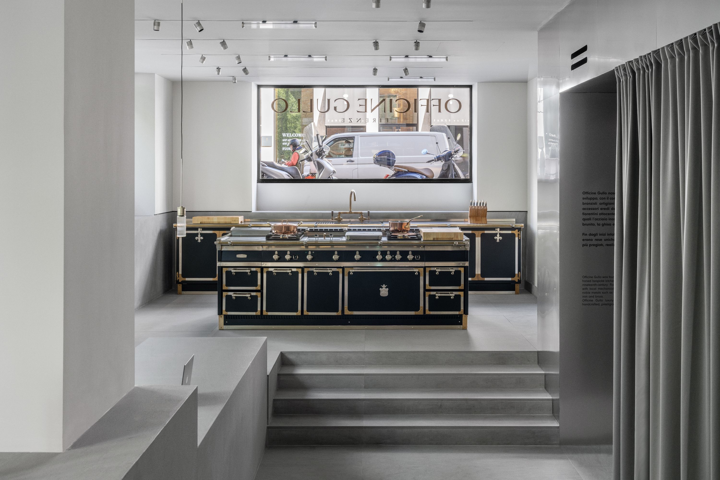 nestled among the elegant buildings of the central via dell'annunciata in milan, the showroom of officine gullo - italian excellence in the handcrafted production of luxury kitchens - blends harmoniously and discreetly into the urban architecture, while at the same time making itself recognisable with its street-level windows that gradually reveal the brand's most exclusive complements.