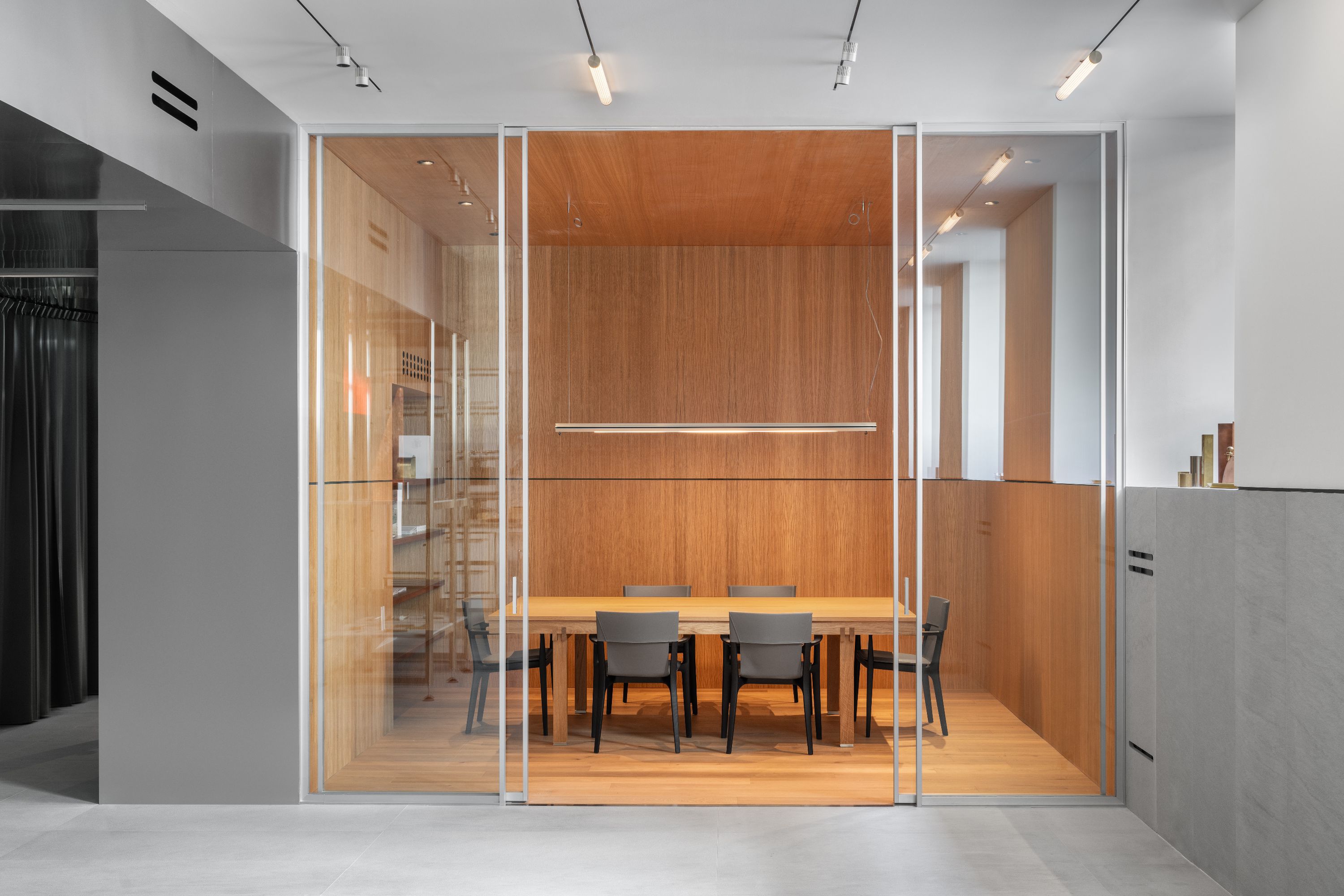 the complete restyling of the space, commissioned to the milan-based superspatial studio, was conceived to offer an innovative showcase experience inspired by the concept of the ‘urban quarry’: a sequence of pure volumes and architectural movements in which natural stone platforms on different levels become stage sets for the presentation and enhancement of officine gullo's creations. the dialogue between the materials represents the brand's technological research and at the same time the craftsmanship that characterises it.