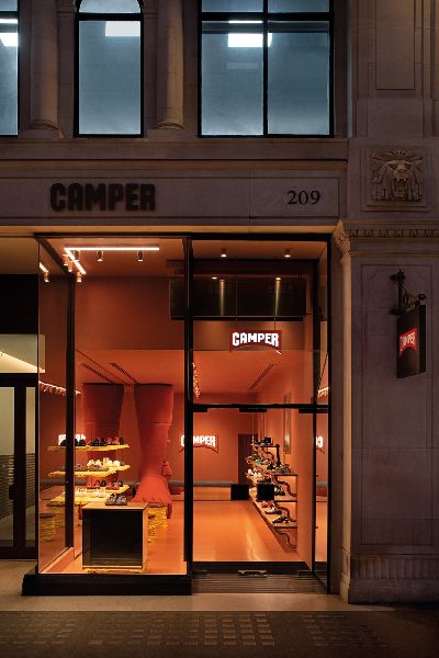 flying across the english channel, at 207-209 regent street – one of the world’s most famous streets for lifestyle and shopping – the london-based camper store was recently renovated to mark its 15th anniversary. james shaw, a london-based designer whose design approach challenges the concept of ‘waste’ to create new materials, oversaw the restyling of the space by making stylistic choices capable of bringing together seemingly distant worlds: the colours of majorcan earth meet the curved and geometric lines of modernism; in the centre, the monumental