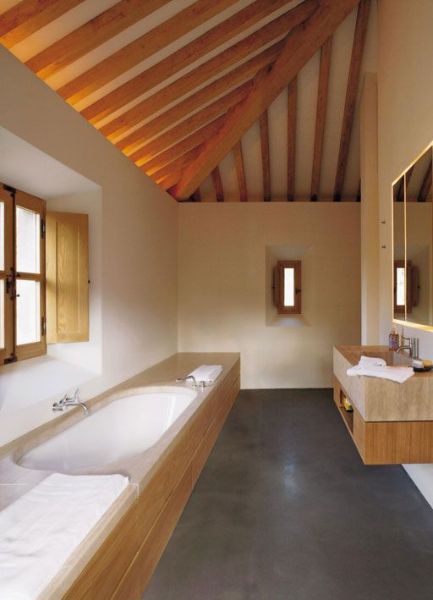 montemaggio is in central italy, between perugia and cortona, close to the border of tuscany and umbria. this is still a wild area, uncontaminated nature, with woods incredibly rich in flora and fauna. in 2002 the director of the netherlands opera bought a property in these mountains, with the intention of creating a holiday home for himself and his friends and collaborators. the property is situated in a valley at an altitude of 650 metres on the sea level and includes a number of pre-existing buildings, the most outstanding of which is a small monastery dating back at twelfth century. at the time of purchase, all the pre-existing structures were in a state of total abandon and disrepair. the client's initial instructions were to make some of the smaller buildings into residential units, seeking at the same time to stabilise the ruins of the monastery and to include a garden of sorts. but with the passage of time another, more ambitious, vision of the project took shape, a project in three stages, one to be completed each year. as well as creating a number of dwellings, the plan was to use various components of the project to test a sort of ‘interface' between architecture and landscape, between artificial and natural. the central point of the first stage of the project is the convent, a simple two-story structure now a complete ruin, distinguished by a stairwell crowned with a dovecote. the project envisages restoration of the original stone exterior with a few very small interventions to make the shape more regular. the stone walls were originally plastered, but are now left bare, in keeping with traditional local architecture. since it is necessary to lay new foundations and floor flags, it becomes an opportunity to open the surfaces of the interior floors, creating a very large south-facing living space, with north-facing kitchen and dining-room overlooking the now-restored walled garden. the restructured stairwell, with windows facing in all directions, is nine metres high and leads to private rooms and guest rooms on the upper floor: asymmetric light is provided by m1 fixtures recessed in the treads. the second stage of the work concentrates on the monastery, fulcrum of the overall project. the restoration plan removes all the numerous later additions, leaving the core essentially in a single volume with a staircase connecting each floor. restructuring of the interior is based on a simple combination of walls in plain plaster, beams in evidence for the chestnut wood ceiling, and florentine pietra serena used for floors, chimney pieces and other general building interventions. roman travertine is used for washbasins, sinks, benches and work surfaces. the ground floor is subdivided to make a large sitting-room, a walled courtyard, a kitchen, a pantry, and other smaller rooms, while a new space partly below ground level serves as a cellar and store room. the first floor has a more secluded sitting-room, and there are private rooms on the second floor, especially designed to take full advantage of the magnificent view which can be enjoyed to the west. a walkway links the monastery to a swimming pool by means of a guest pavilion. the central point of the third stage of the project is to be the home farm, where it is planned to build further autonomous dwellings for guests from the two adjacent structures and the free-standing guest pavilion. the more open landscapes and low walls of the farm will give the final touch of class to the entire complex, characterised by the interplay of themes and variations which begins with the segregation of architecture and landscape represented by the high ‘castle style' wall of the monastery and the enclosed courtyard, but then undergoes transition in the interior garden of the convent. the lighting project is coherent with a search for the relationship between architectural space and nature: lamps are concealed behind mirrors, into slits in the ceilings; lights reflect on the windows and converse with natural light, accompanying guests in an endless syntony between the light of the valley and that of the house.