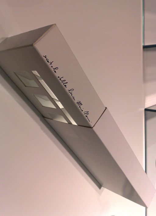el trabajo presenta también otro aspecto de gran innovación. los cortes de luz, su luz espacial y de acento, se realizan por primer vez utilizando tubos fluorescentes t5. las fluorescencias, tan ligadas al diseño industrial encuentran en este trabajo una aplicación innovadora. los tubos están alojados en el interior de los perfiles c2 que rodean a los productos, siguen las líneas de las tecas, bajan del techo. cada parte del perfil ha sido realizada a medida, como en una sastrería. gracias a pequeños cortes, fresados realizados en obra, ha sido posible comprimir la luz difundida de las fluorescencias en rayos luminosos muy precisos. deriva una iluminación que se dedica completamente a los volúmenes y a los detalles de los objetos, respetando totalmente el ahorro energético. es la emoción de la nada: luz que marca y crea los espacios acentuando detalles a los que prestar atención sin ni siquiera saber porqué.