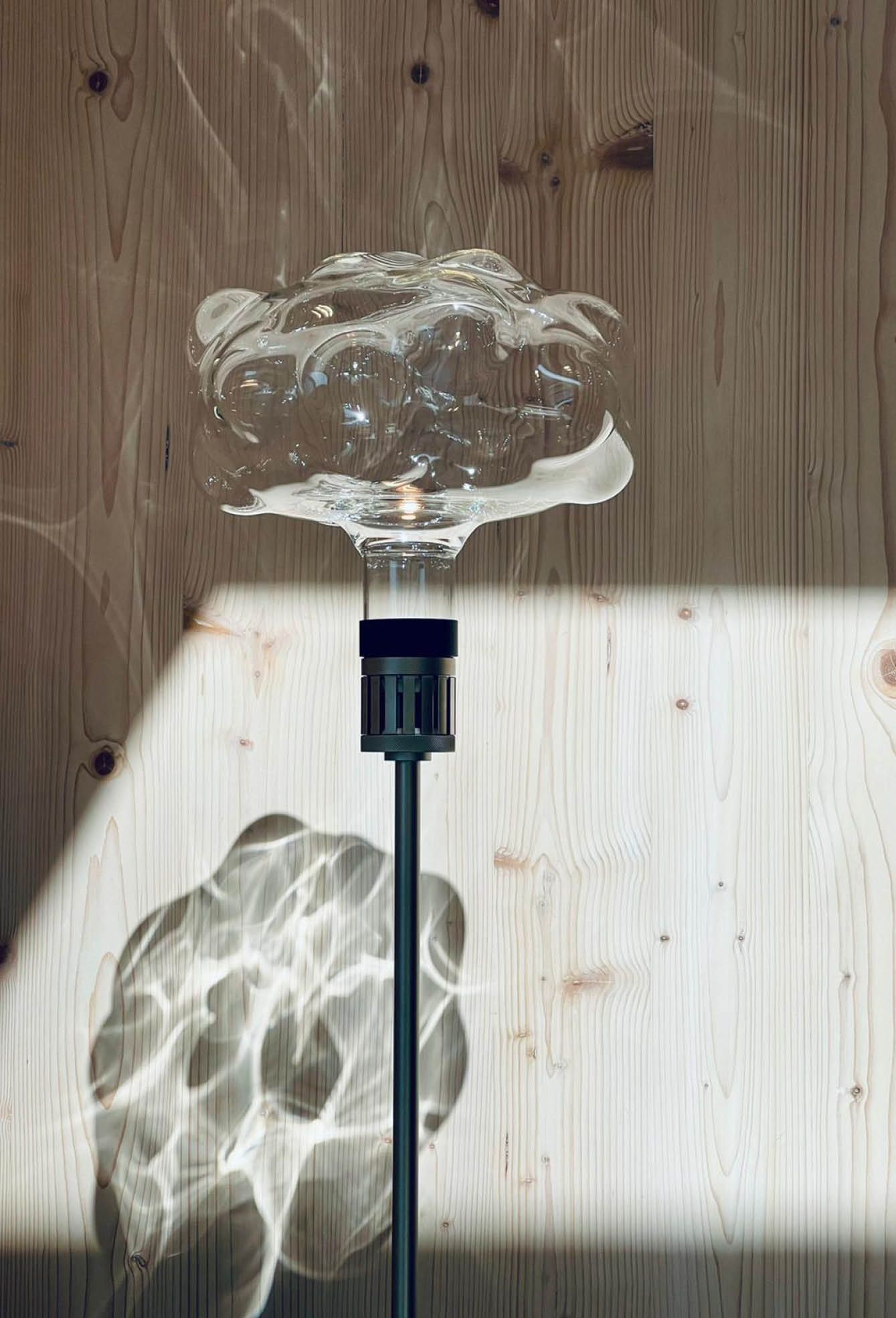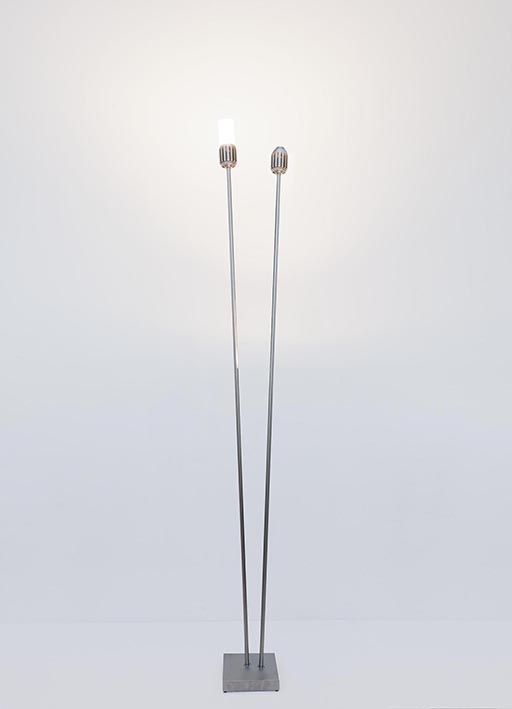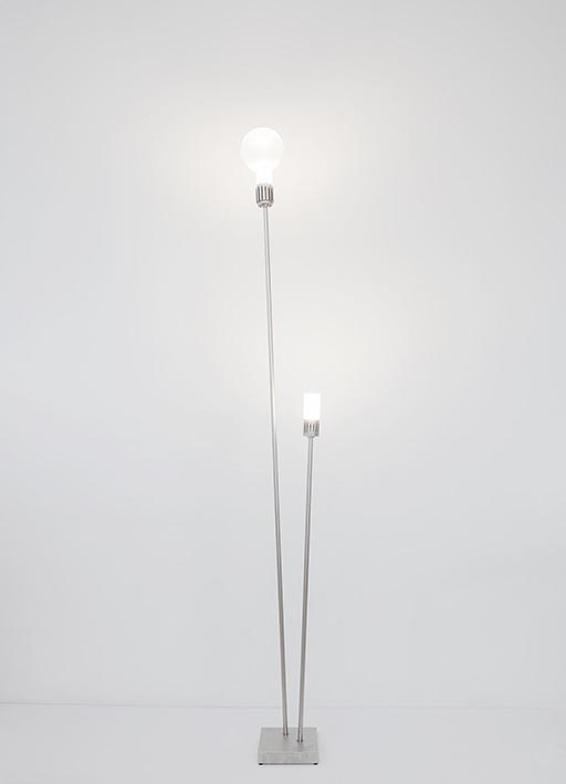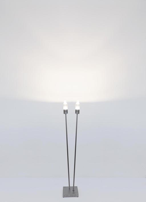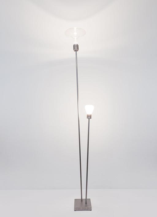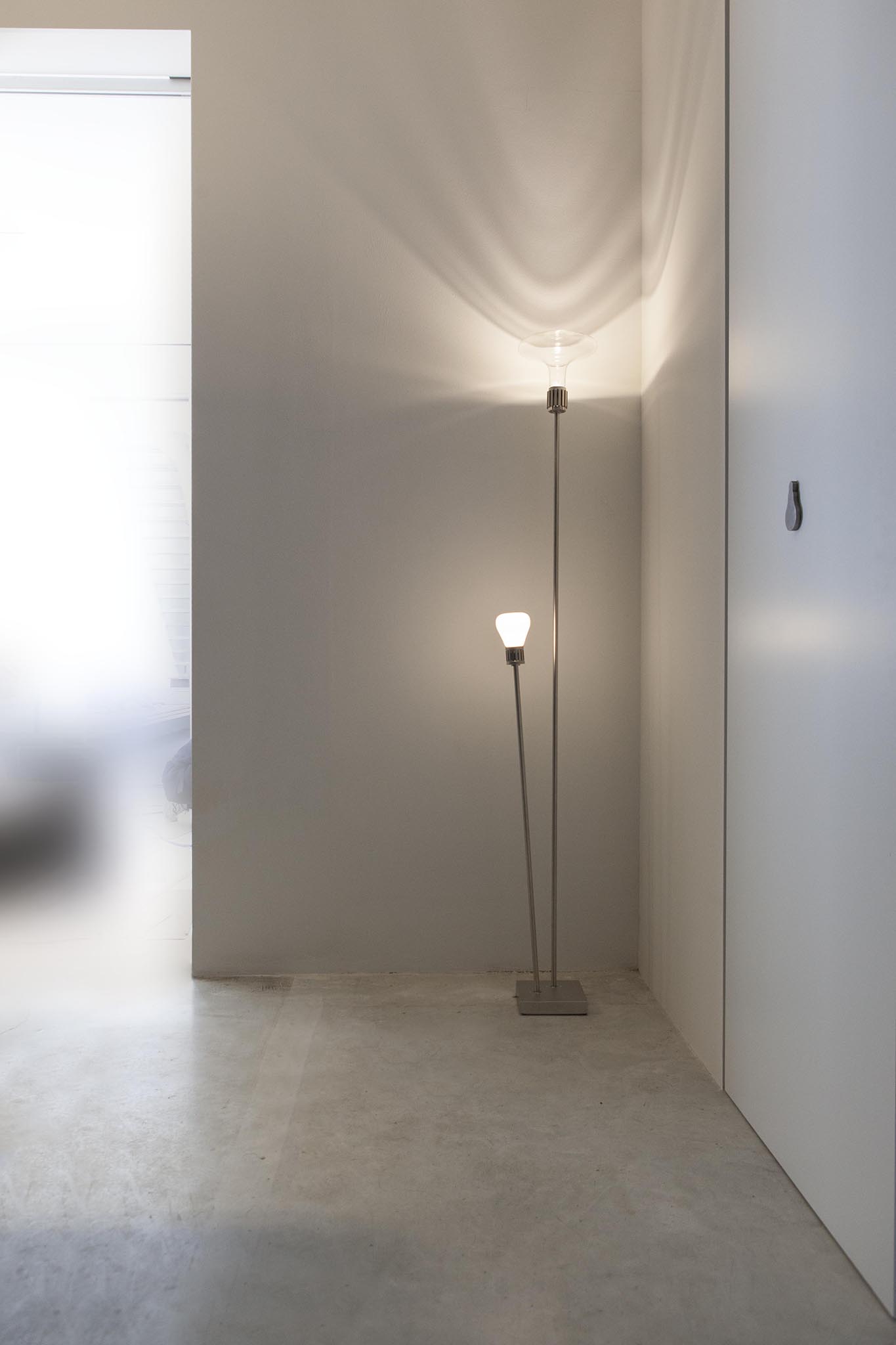 dry location rated table light fitting for indoor use, made of oxidised aluminium and powder coated zamak alloy. consisting of a 200x200mm/7.9x7.9’’ base where two diameter Ø13mm/0.5’’ h.1000mm/39.4’’ or h.1800mm/70.9’’ rods are inserted. versions: n55 terra with hm02 classic diffuser, n55 terra with dc02 decorative diffuser, n55 terra with kk01 decorative diffuser, n55 terra with pz03 decorative diffuser, n55 terra with pz01 e pz03 decorative diffuser, n55 terra with wm01 decorative bulb and spot82x79 technical diffuser, n55 terra with pz01 decorative bulb and spot82x79 technical diffuser, n55 terra with hm02 classic bulb and spot55x61 technical diffuser. wired with propulsore dinamico n55 55/350 les19 9.7W 350mA 1240lm and 55/500 les19 14W 500mA 1580lm Ra98 1 step macadam. the specific n55 joint allows to change three types of light diffuser: classic, decorative and technical. any irregularities in the glass are a guarantee of an unique product, blown and entirely hand crafted by master glassmakers. the base is designed to accommodate two rods (48Vdc) and it is wired with 120V power supply, rod wired with 48V converter with intelligent control which automatically provides the suitable current according to the type of propeller. by turning the rod on its base four different light intensities can be achieved: maximum light (100%), ambient light (60%) and restful light (25%), off (0%). finishes: argento hacca, nero55; transparent, satin and milk white glass. customize your light visit www.Viabizzuno.com.
