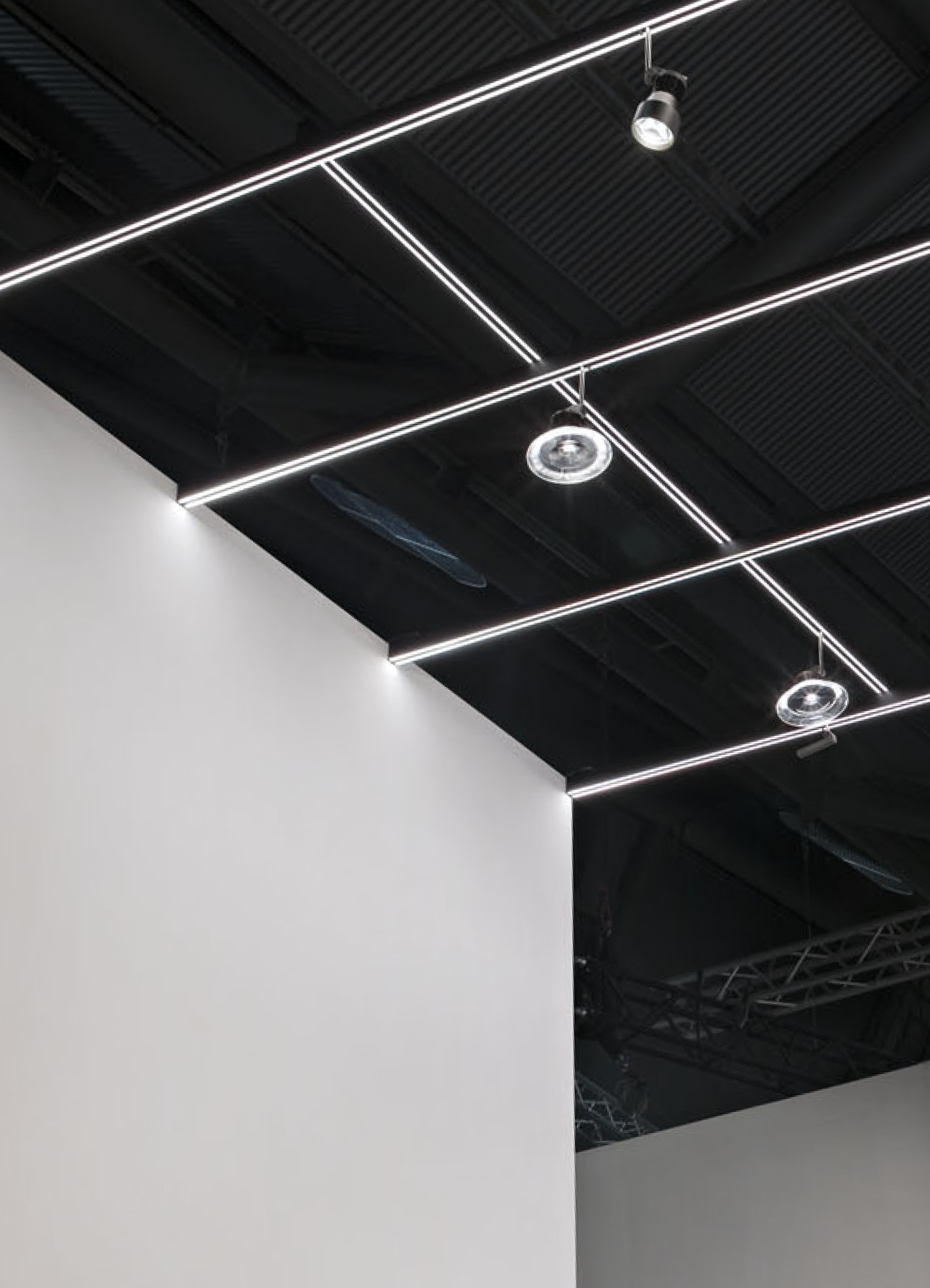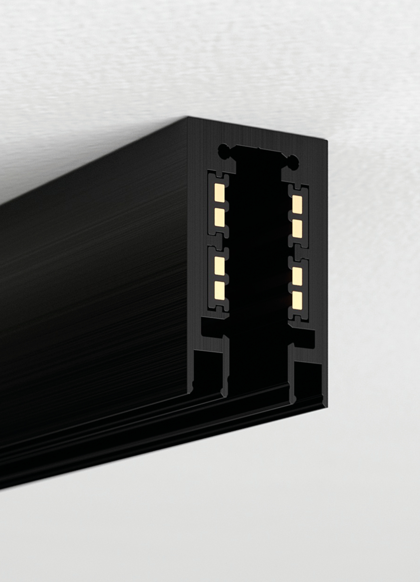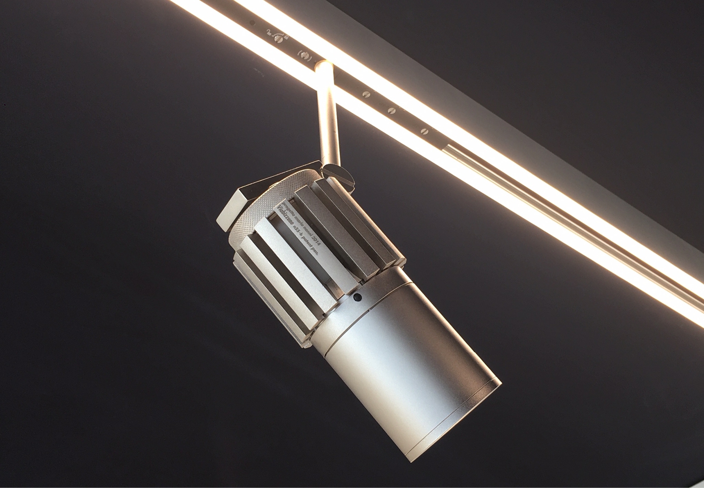 IP20-rated track system for indoor use. made with 30x48mm oxidized extruded aluminum profile up to 3000mm. possibility of ceiling installation and total recessed through special housing. eight copper conductors of 3mm² cross section form four ignition lines up to 5 amperes. set to accommodate point-to-point addressable adapters via casambi system for n55 system interfaces in adjustable and suspension versions. versions: A1 sistema without electronic source, A1 sistema with electronic source complete with satin polycarbonate extrusion. A10 sistema without electronic source, A11 sistema without electronic source, A11 sistema with electronic source complete with satin-finished polycarbonate extrusion. wired with 2700K or 3000K 2x13W/m linear electronic source up to 1250lm/m with built-in dimmer switches for diffused light. dynamic propellers n55 matchable: 55/350e les19 9.7W 350mA 1240lm, 55/350 les19 9.7W 350mA 1240lm, 55/500 les19 14W 500mA 1580lm, 55/500 les9 13.6W 500mA 800lm, 65/500e les19 14W 500mA 1580lm, 65/700 les19 19.9W 700mA 2140lm, 65/700 les9 19.5W 700mA 1110lm, 82/1050 les19 30.5W 1050mA 3000lm. n55 dynamic propellers have electronic source 2700K, 3000K or 3000Vb K (designed for haute couture) Ra98 1 step macadam. special n55 connection allows interchange between three types of diffusers: classic, decorative and technical. constant voltage power supply 48Vdc excluded, to be installed remote. accessories: power adapter supplied with 8x1mm² 3000mm cable, linear joints, corner joints, suspension kit. finishes: argento hacca and nero55. A sistema is manageable from mobile device via Viascenario app, the Viabizzuno wireless lighting control system.