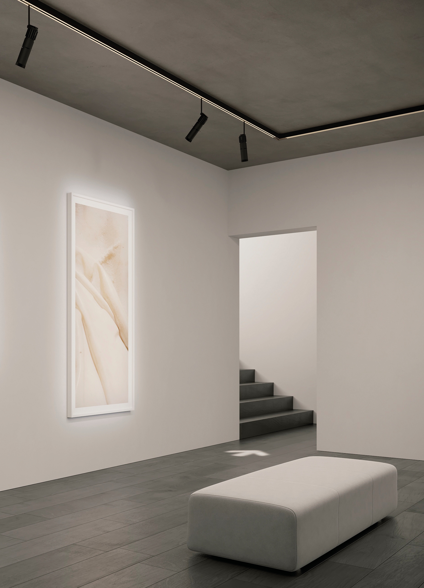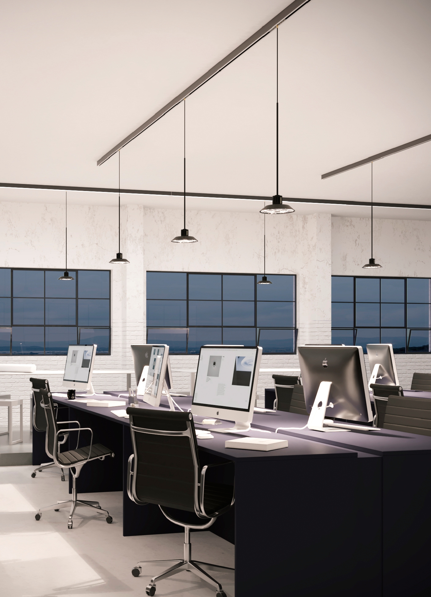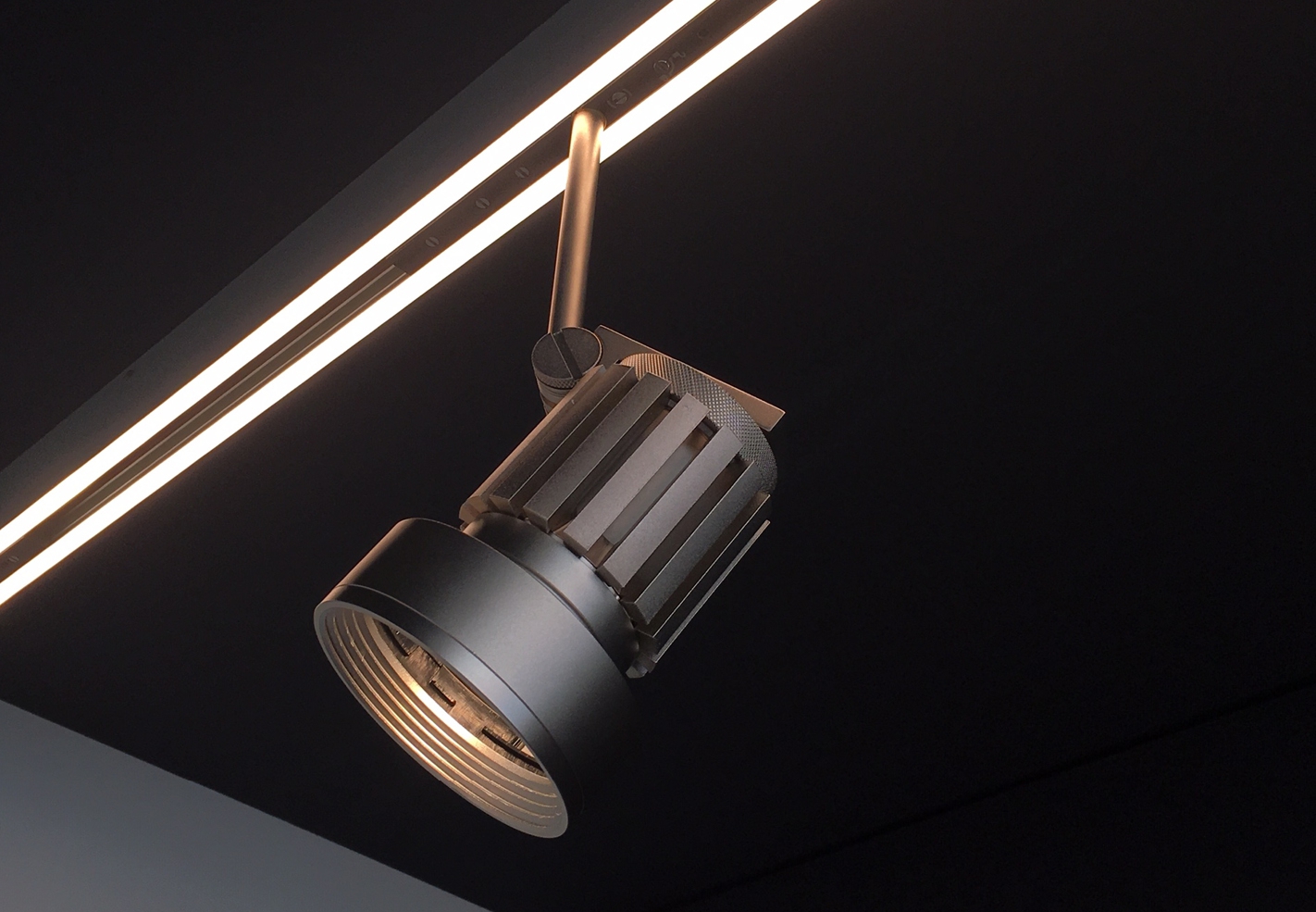 IP20-rated track system for indoor use. made with 30x48mm oxidized extruded aluminum profile up to 3000mm. possibility of ceiling installation and total recessed through special housing. eight copper conductors of 3mm² cross section form four ignition lines up to 5 amperes. set to accommodate point-to-point addressable adapters via casambi system for n55 system interfaces in adjustable and suspension versions. versions: A1 sistema without electronic source, A1 sistema with electronic source complete with satin polycarbonate extrusion. A10 sistema without electronic source, A11 sistema without electronic source, A11 sistema with electronic source complete with satin-finished polycarbonate extrusion. wired with 2700K or 3000K 2x13W/m linear electronic source up to 1250lm/m with built-in dimmer switches for diffused light. dynamic propellers n55 matchable: 55/350e les19 9.7W 350mA 1240lm, 55/350 les19 9.7W 350mA 1240lm, 55/500 les19 14W 500mA 1580lm, 55/500 les9 13.6W 500mA 800lm, 65/500e les19 14W 500mA 1580lm, 65/700 les19 19.9W 700mA 2140lm, 65/700 les9 19.5W 700mA 1110lm, 82/1050 les19 30.5W 1050mA 3000lm. n55 dynamic propellers have electronic source 2700K, 3000K or 3000Vb K (designed for haute couture) Ra98 1 step macadam. special n55 connection allows interchange between three types of diffusers: classic, decorative and technical. constant voltage power supply 48Vdc excluded, to be installed remote. accessories: power adapter supplied with 8x1mm² 3000mm cable, linear joints, corner joints, suspension kit. finishes: argento hacca and nero55. A sistema is manageable from mobile device via Viascenario app, the Viabizzuno wireless lighting control system.