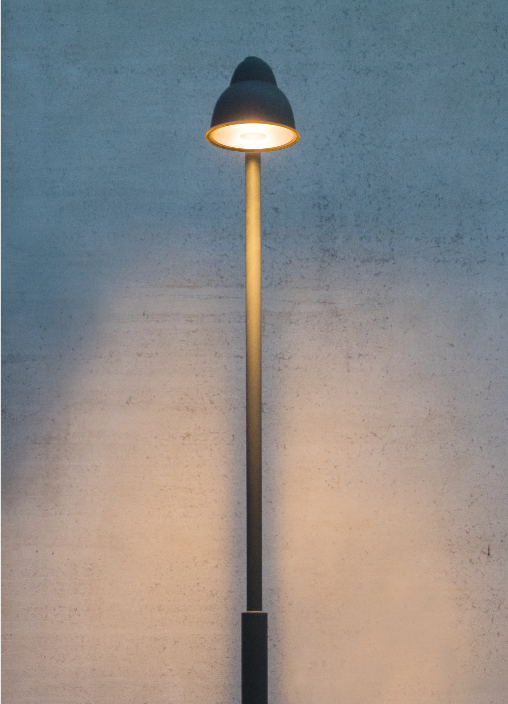 made of a steel tapered pole, hot galvanised and powder coated, diameter Ø102mm up to h.2000mm from the ground and diameter Ø60mm at the top.