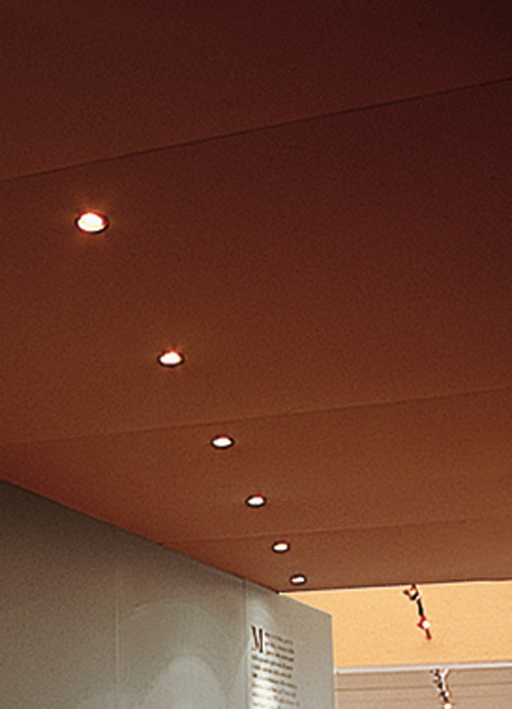 cuerpo iluminante de interiores IP20 para empotrar en superficies con espesor inferior a 6mm, orientable, disponible en los acabados blanco, gris y latón en dos modelos distintos: dn55, cableado con lámpara dicroica GU4 35W 12V, y dn70 cableado con lámpara dicroica/led GU5,3 50W. transformadores y alimentadores no incluidos. m2 garantiza un excelente confort visual gracias a la posición retrasada de la fuente, situada en un anillo antidestello.