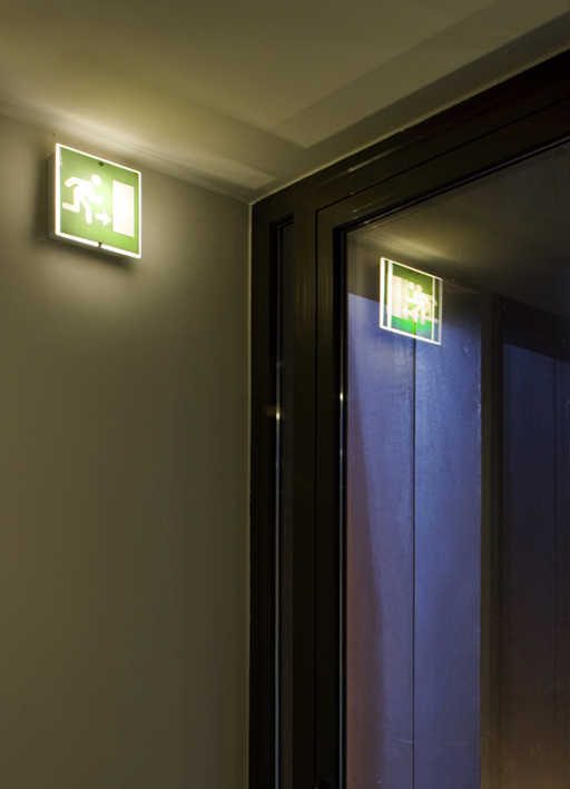 cuerpo iluminante a pared o para empotrar para interiores IP20 realizado en de metal barnizado blanco o gris con cristal mate o transparente, equipada para lámparas fluorescentes, está provista de batería Ni–Cd para alta temperatura que garantiza 1.30h de autonomía con lámpara de 18W y 1 h para lámpara de 24W. diamante puede empotrarse en los ladrillos mediante encofrado y en el pladur mediante los oportes adaptados, y es conforme con las normas CEI–EN 60924. también hay disponibles distintos pictogramas para poder completar una instalación de señalética.