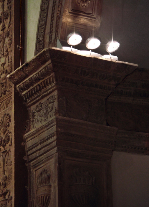 cuerpo iluminante de pared o techo, para interiores IP20, realizado en metal barnizado blanco. diseñado para ser colocado sobre capiteles y marcos, puede cablearse para lámparas fluorescentes, halógenas/led con reflector de aluminio o vapores de halogenuros.