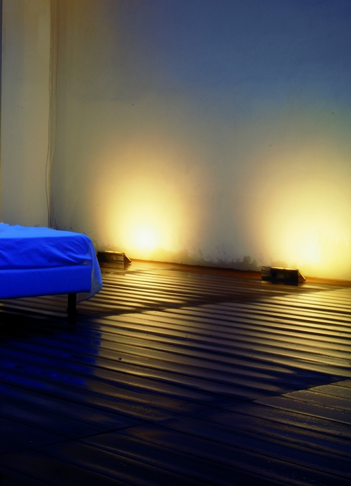 cuerpo iluminante para interiores y exteriores IP55 realizado en acero inoxidable barnizado gris o blanco. proyectado para colocar sobre capiteles y marcos, en su interior aloja un equipado para lámparas de haluros RX7s 70W con alimentador electrónico, kit halo R7s 200W o fluorescente con lámparas GX24q–4 42W.