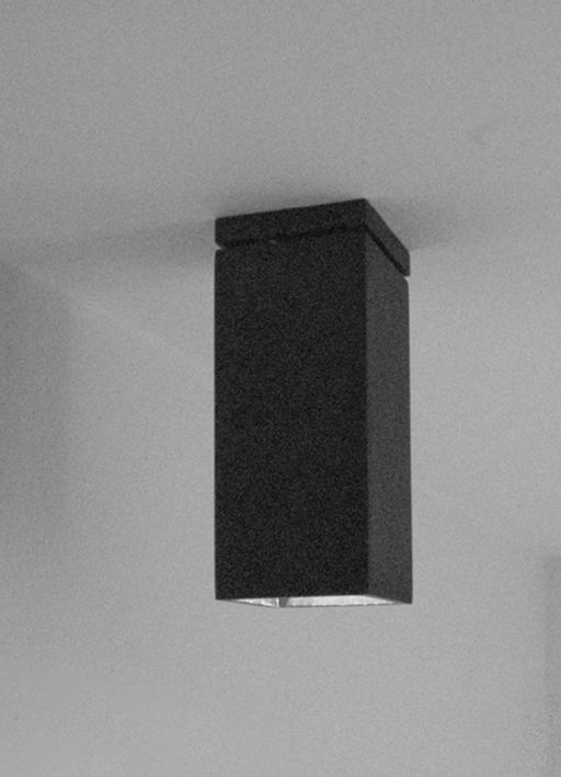 aparato de iluminación techo para interior IP20 de aluminio extrudido 50x50x120mm oxidado en color blanco, gris, marrón y negro. dona una luz de acento hacia el bajo. aloja una bombilla dicroica GU4 20W 12V o un led de 3W 3200K. la posición de la bombilla puede ajustarse en profundidad por una carrera máxima de 35mm.