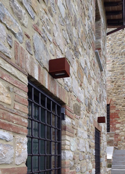 cuerpo iluminante para interiores y exteriores IP65 en acero inoxidable AISI 316L. disponible en los acabados: brillante, pintado pardo antiguo, negro noche, scurodivals, gris plateado, blanco. en ambientes y condiciones climáticas con fuerte índice de humedad salina, se aconseja el uso de la versión en acero inoxidable 316L bruñido. il cubo biemissione disponible también en las versiones pardo y cor-ten natural que, expuesto al aire libre, se recubrirá de una capa de óxido pardo autoprotector cuyos tonos de color cambian con el tiempo y según la exposición a los agentes atmosféricos. cubo biemissione lleva un cristal transparente y está cableado para bombillas halógenas, led y de vapores de halogenuros.