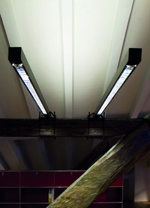 cuerpo iluminante suspendido, biemisión para interiores IP20 realizado en aluminio oxidado plata o pardo, preparado con óptica darklight para luz directa y luz difusa indirecta. disponible en la versión con tubo fluorescente de medidas 1200mm, 1500mm, 1800mm y 2100mm, que llevan, respectivamente, bombillas fluorescentes G5 14/24W, 21/39W, 28/54W y 35/49/80W y con dos tubos en línea de 1900mm, 2500mm, 3100mm y 3700mm con bombillas fluorescentes G5 2x14/24W, 2x21/39W, 2x28/54W e 2x35/49W. todos los modelos están disponibles en las cuatro versiones: on/off, con regulación 1-10V, o regulación dali. square system darklight incluye los cables de acero para la suspensión, el cable de alimentación transparente y el rosetón con el alimentador correspondiente.