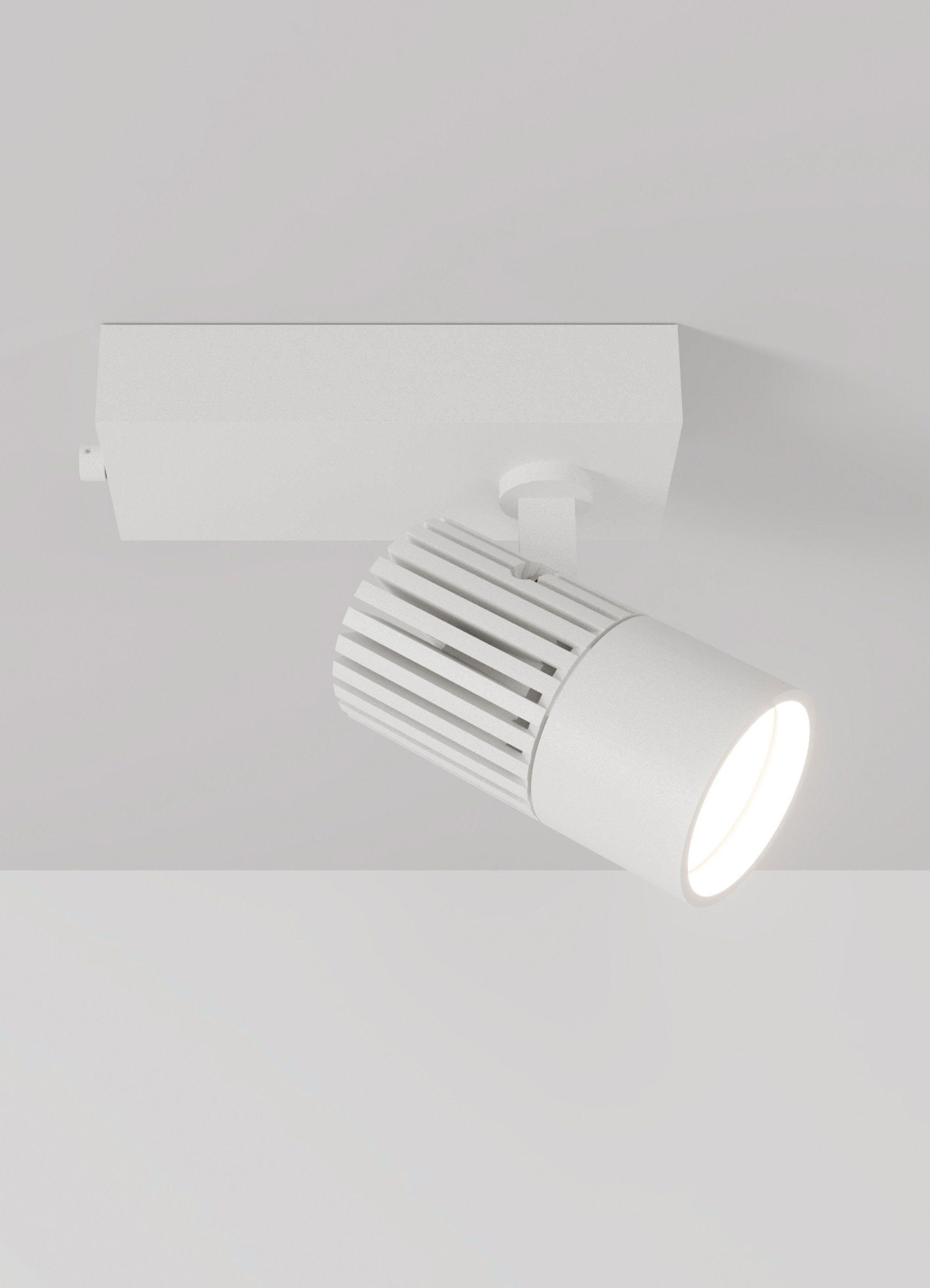 made of powder coated oxidized aluminium, consisting of diameter Ø80mm h.146mm spotlight, adjustable by 360° on the vertical axis and by 140° on the horizontal axis, on a 200x88x40mm base.